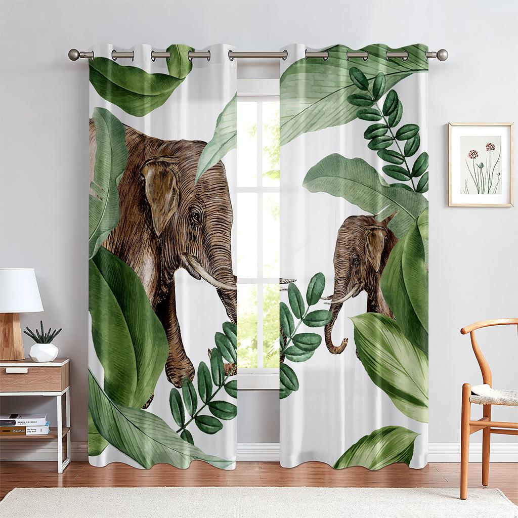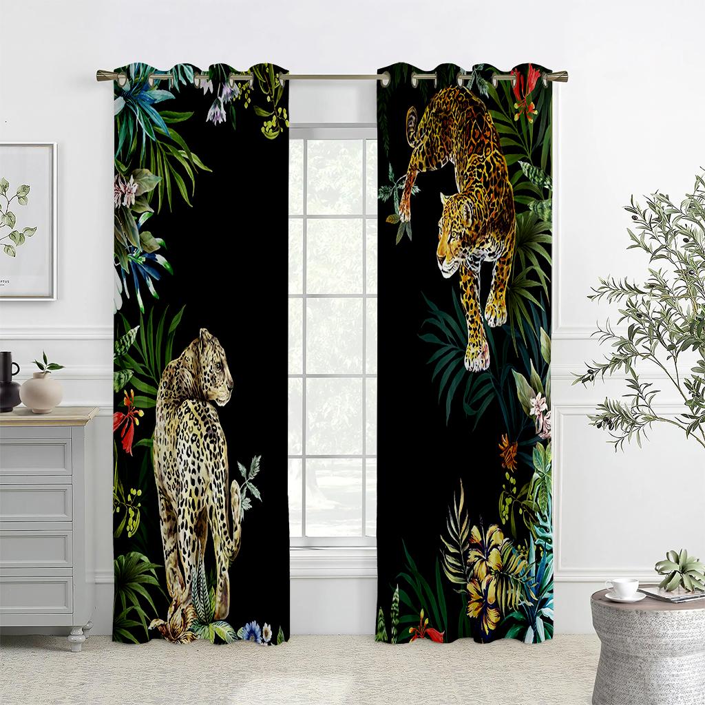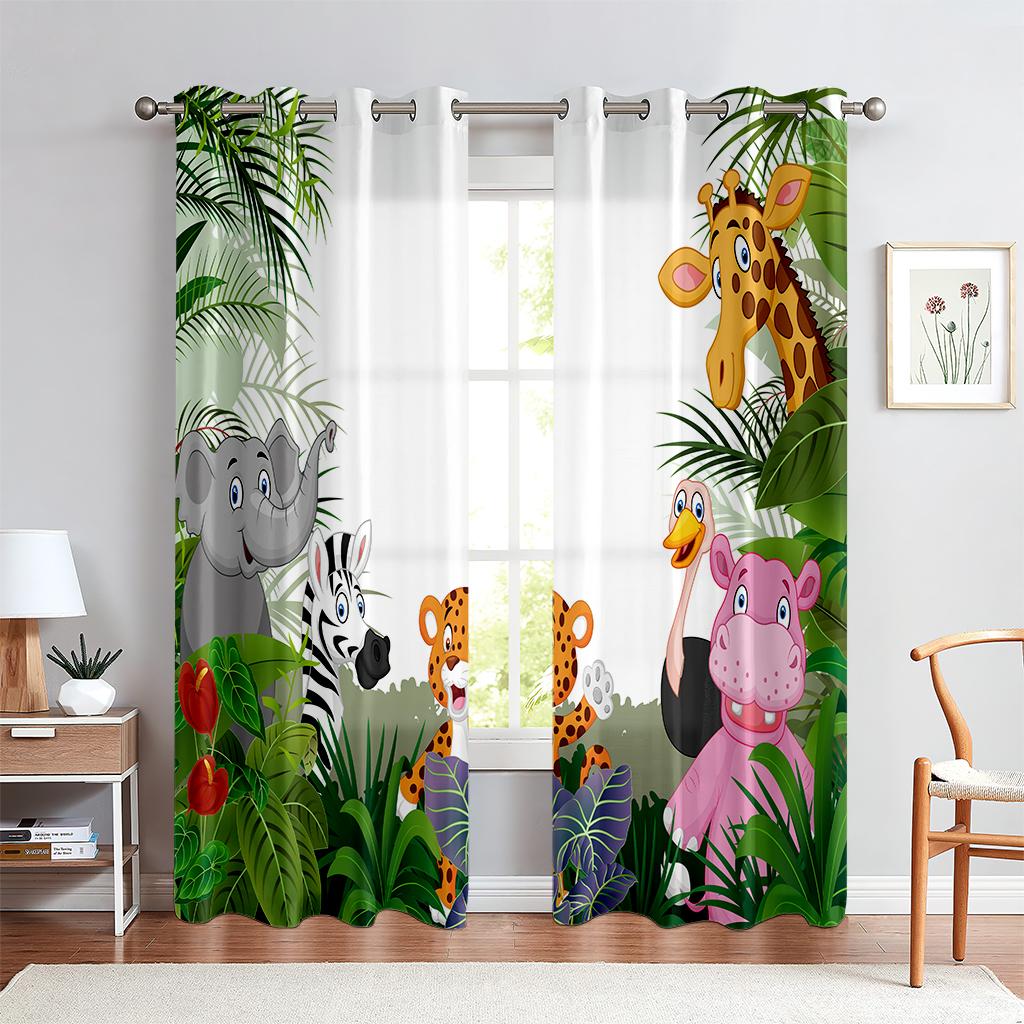 Шторы с принтом животных в тропическом лесу, полузатемняющие, шторы с карманами на штанге для кухни, кафе, гостиной, украшения дома