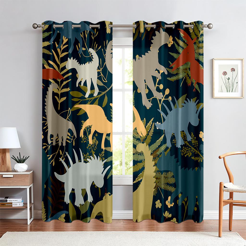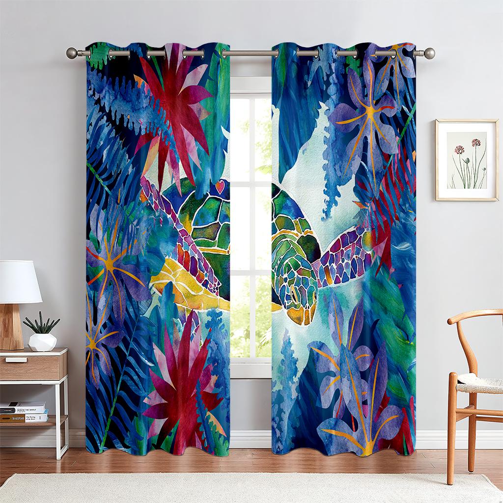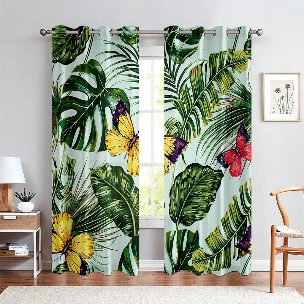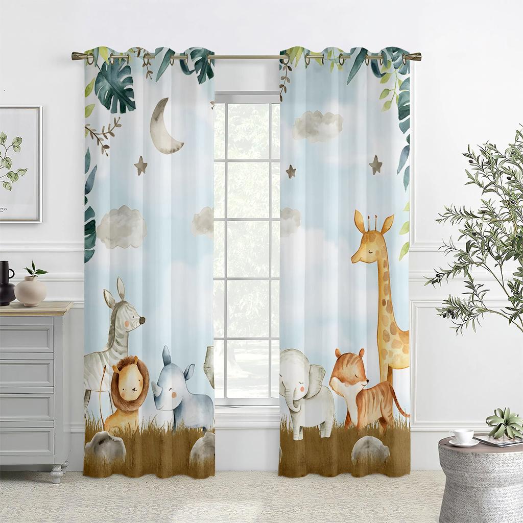 Шторы с принтом животных в тропическом лесу, полузатемняющие, шторы с карманами на штанге для кухни, кафе, гостиной, украшения дома