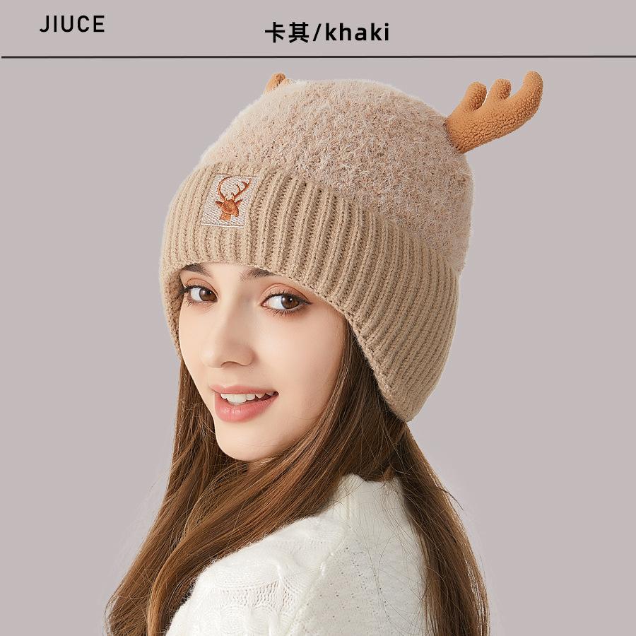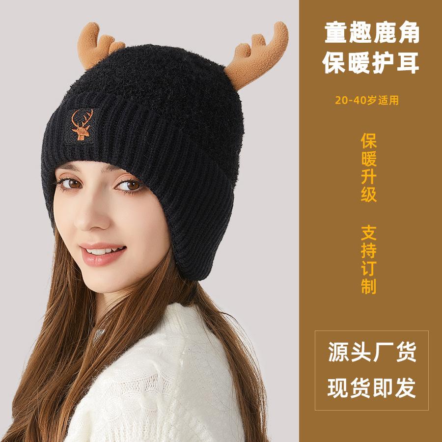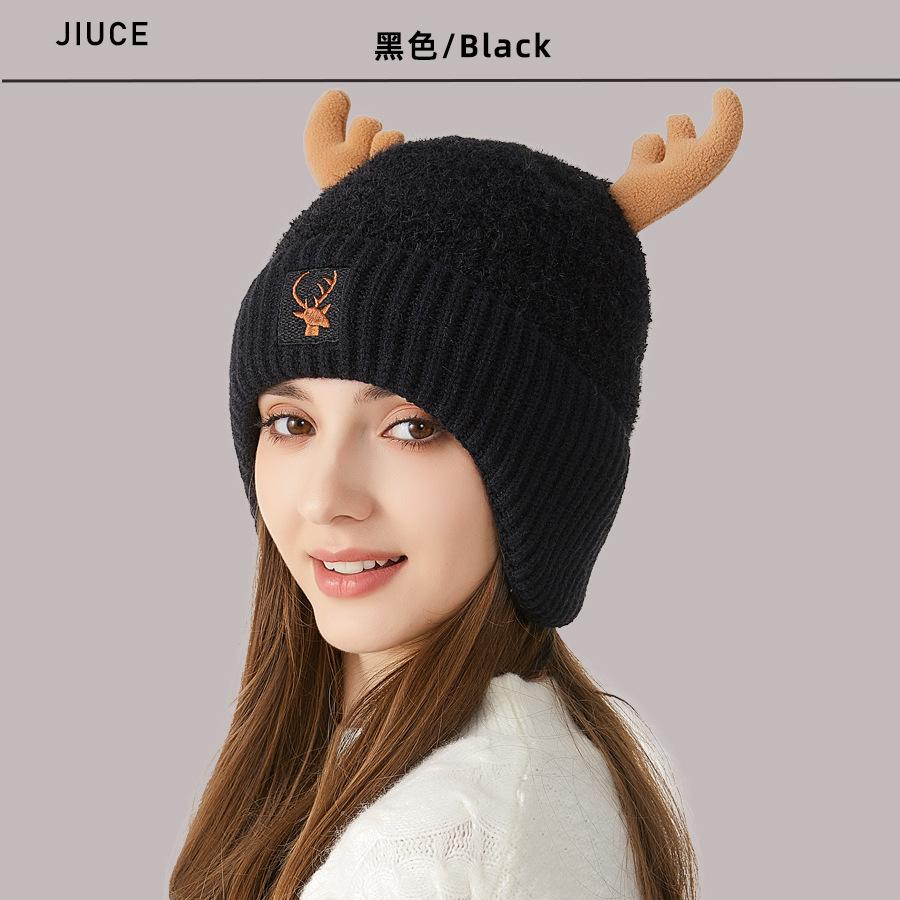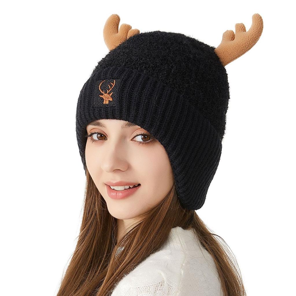 Вязаная шапка женская версия сращивание рогов, защитные наушники, утолщенная термошапка мультяшная милая омолаживающая девочка зимняя шерстяная шапка