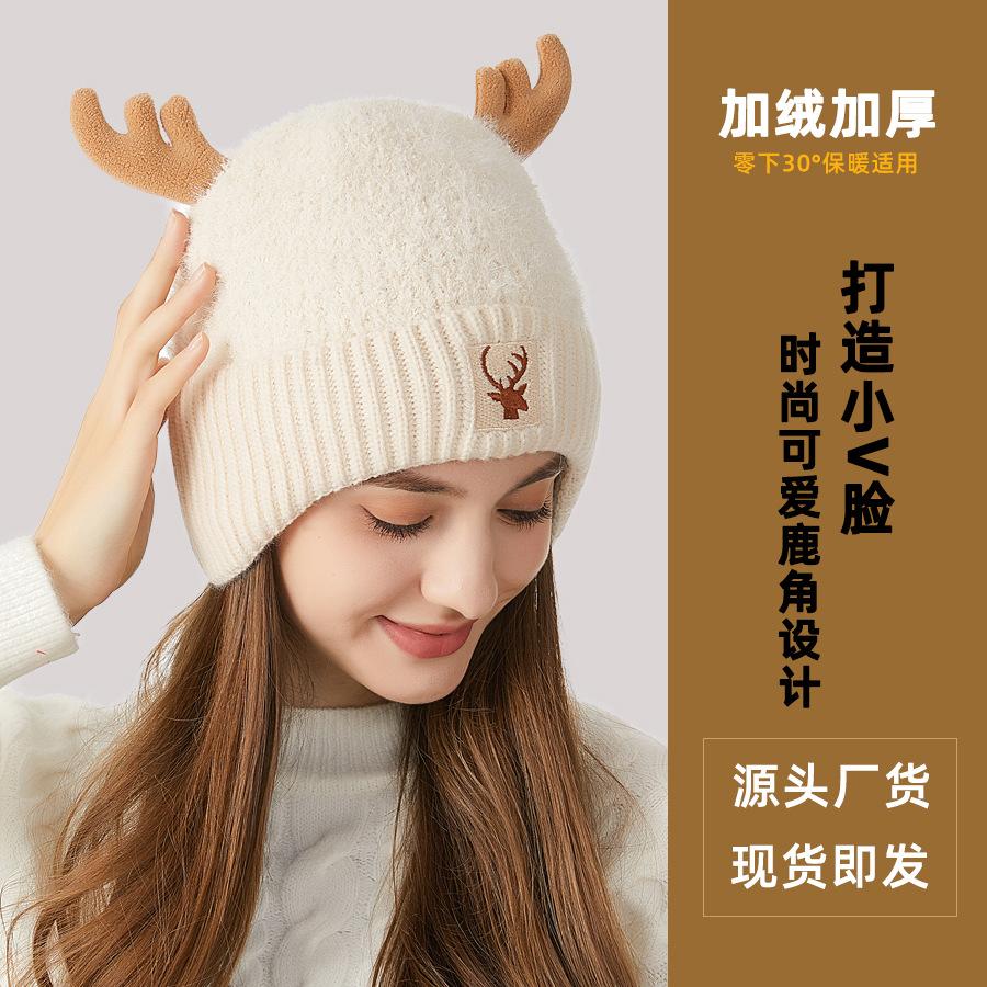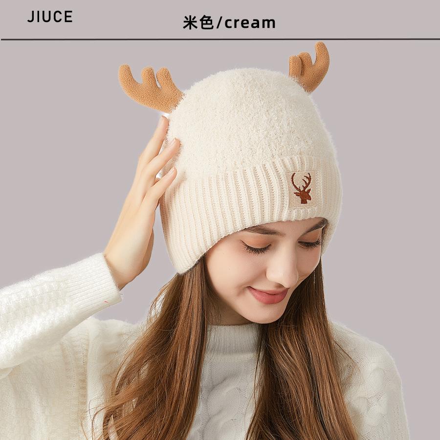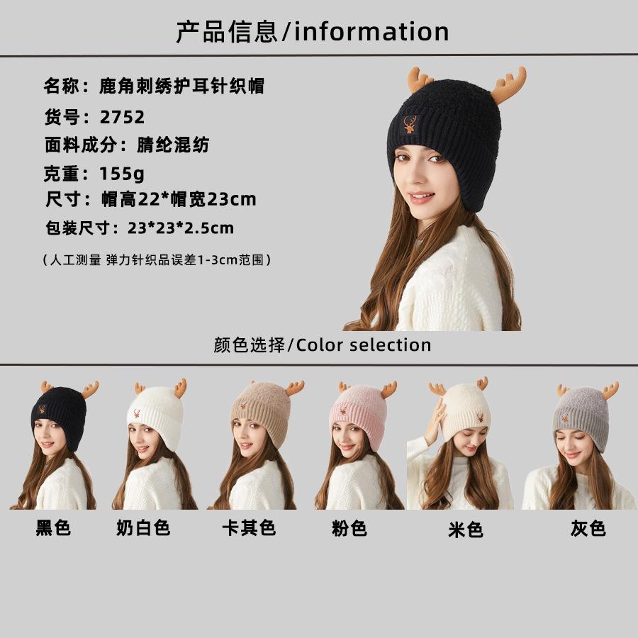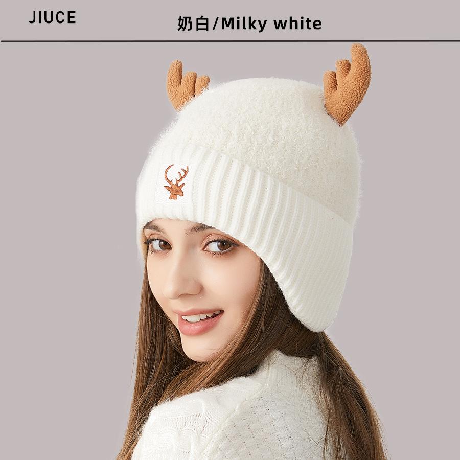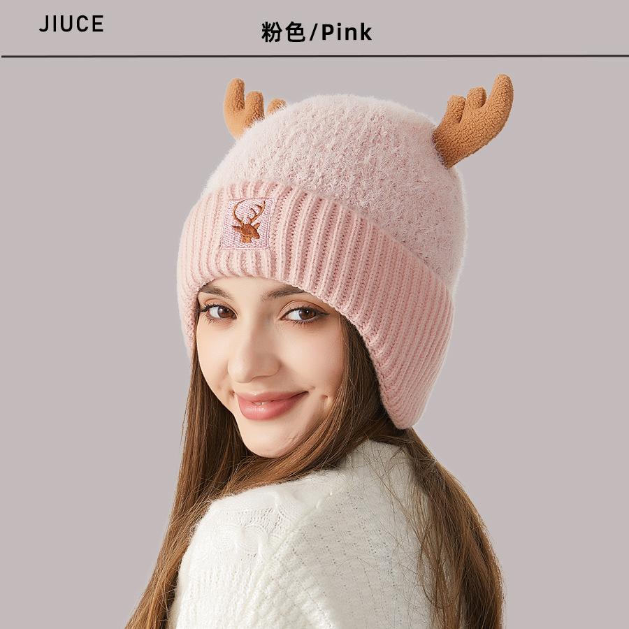 Вязаная шапка женская версия сращивание рогов, защитные наушники, утолщенная термошапка мультяшная милая омолаживающая девочка зимняя шерстяная шапка