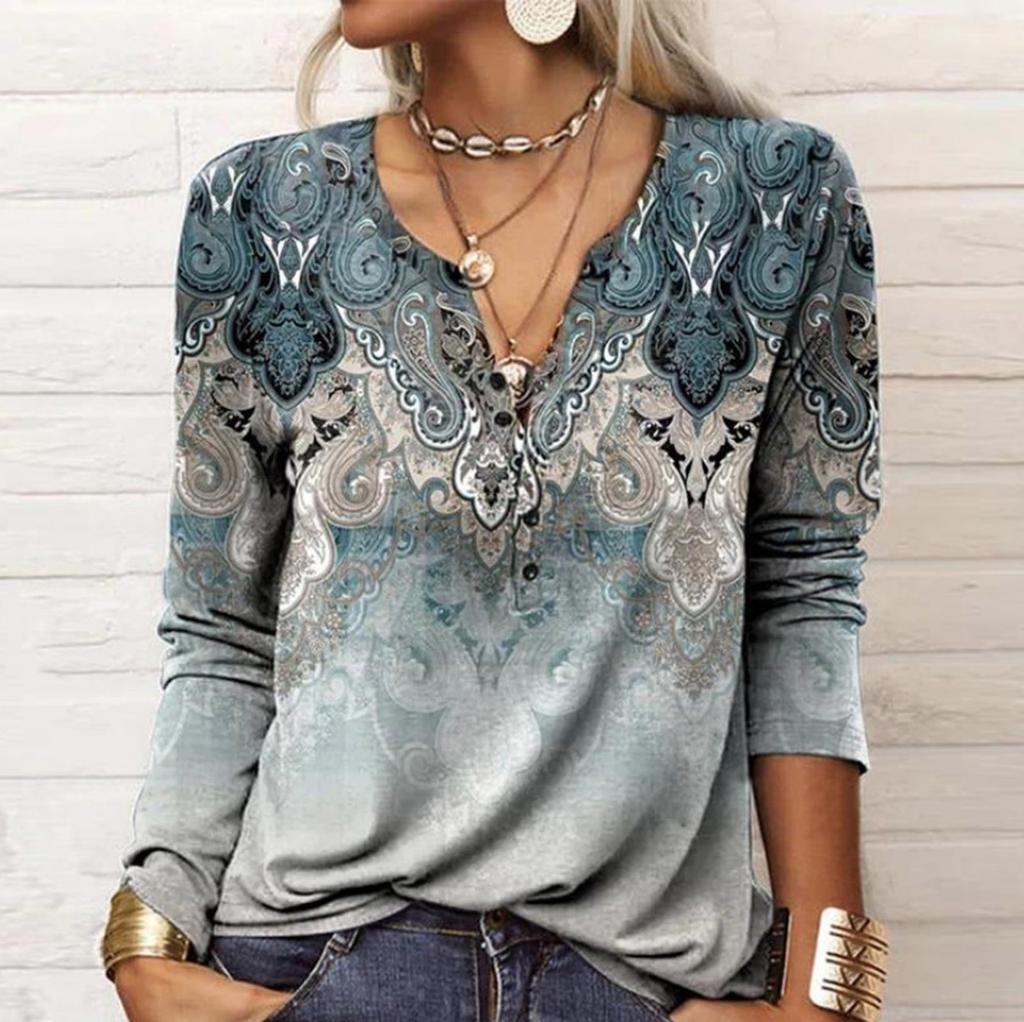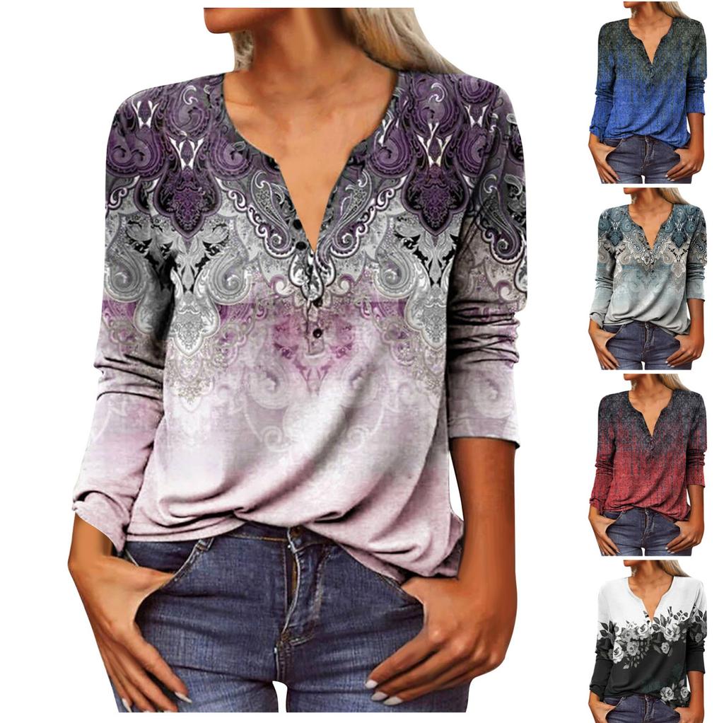 Женская новая модная футболка с длинным рукавом и принтом на пуговицах, тонкий топ, повседневные топы