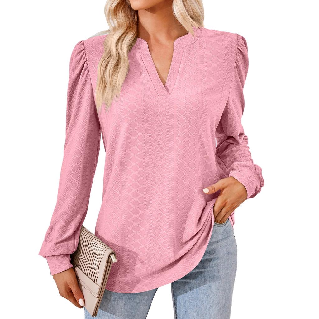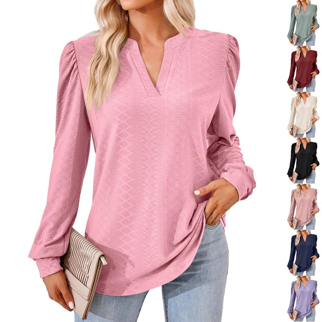Осенне-зимняя новая однотонная свободная футболка с v-образным вырезом и длинными рукавами, женские топы