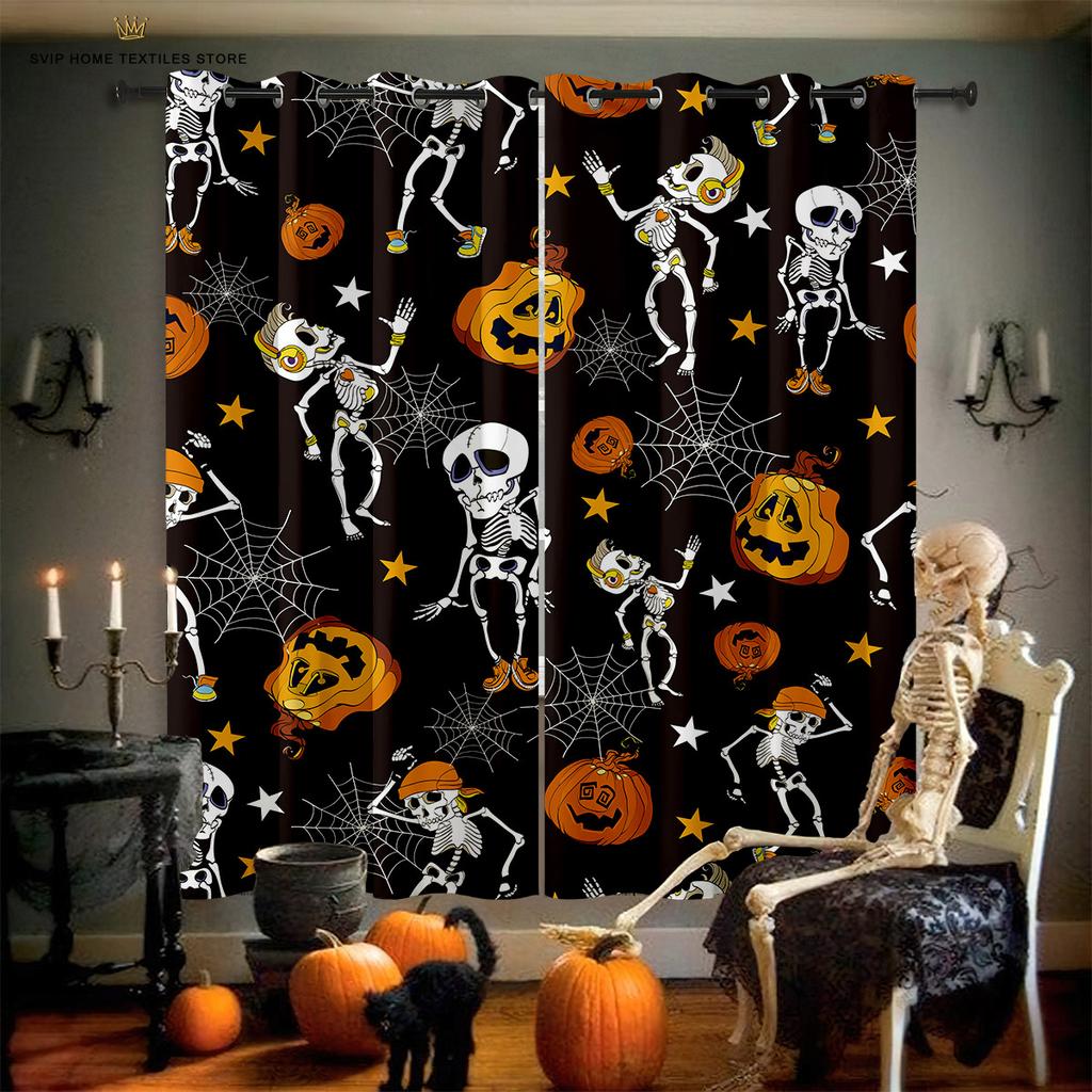 Декоративные шторы на Хэллоуин для детской комнаты, принт с изображением черепа из мультфильма ужасов, ресторана, праздничной вечеринки