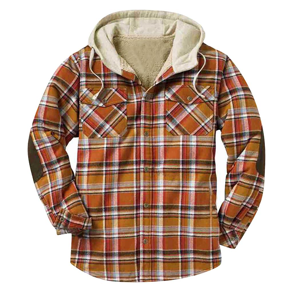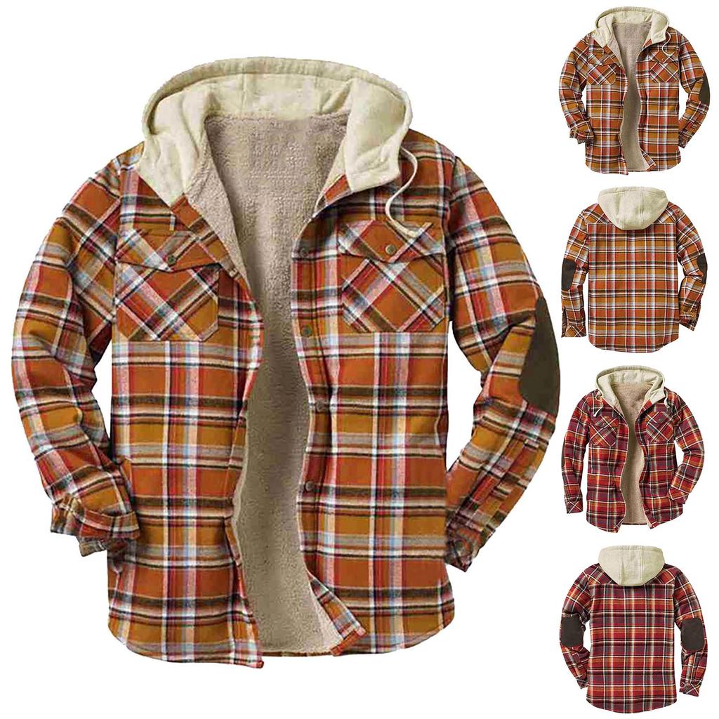 Мужская стеганая подкладка на пуговицах Клетчатая рубашка Добавьте бархат, чтобы сохранить тепло Куртка с капюшоном