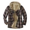 Мужская клетчатая рубашка на стеганой подкладке на пуговицах с бархатной теплой курткой с капюшоном