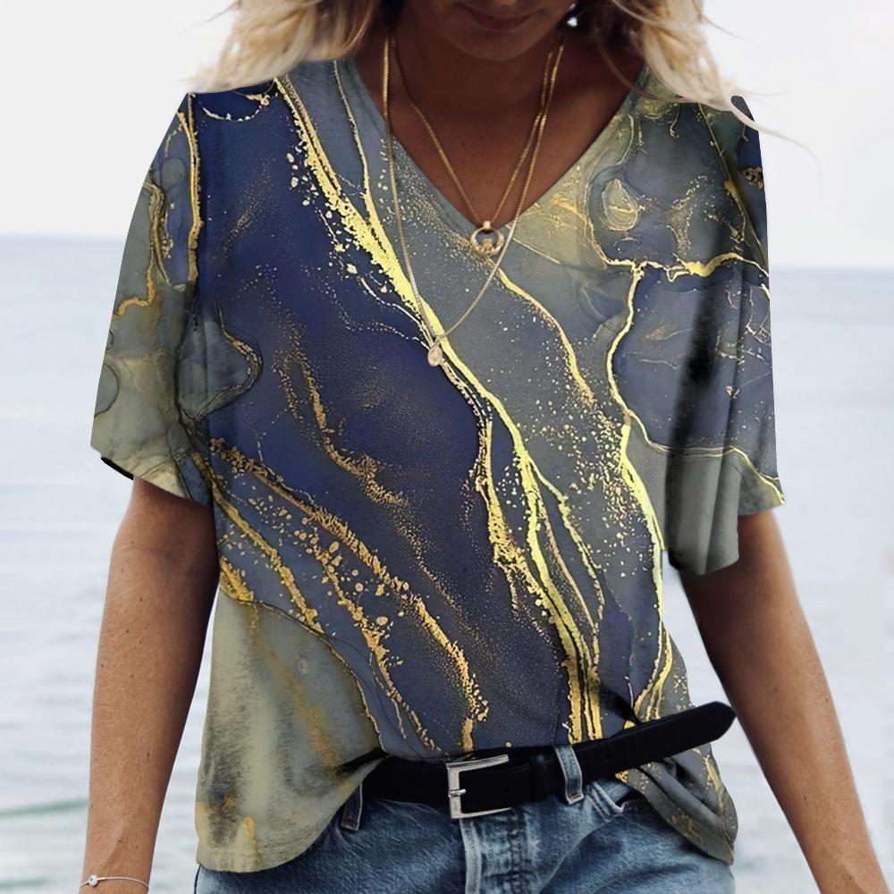Летние женские футболки с 3D-принтом, градиентная футболка Harajuku, свободные футболки для женской одежды, новые топы с коротким рукавом и V-образным вырезом — купить товар онлайн с бесплатной доставкой по всему миру!