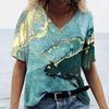 Летние женские футболки с 3D-принтом, градиентная футболка Harajuku, свободные футболки для женской одежды, новые топы с коротким рукавом и V-образным вырезом