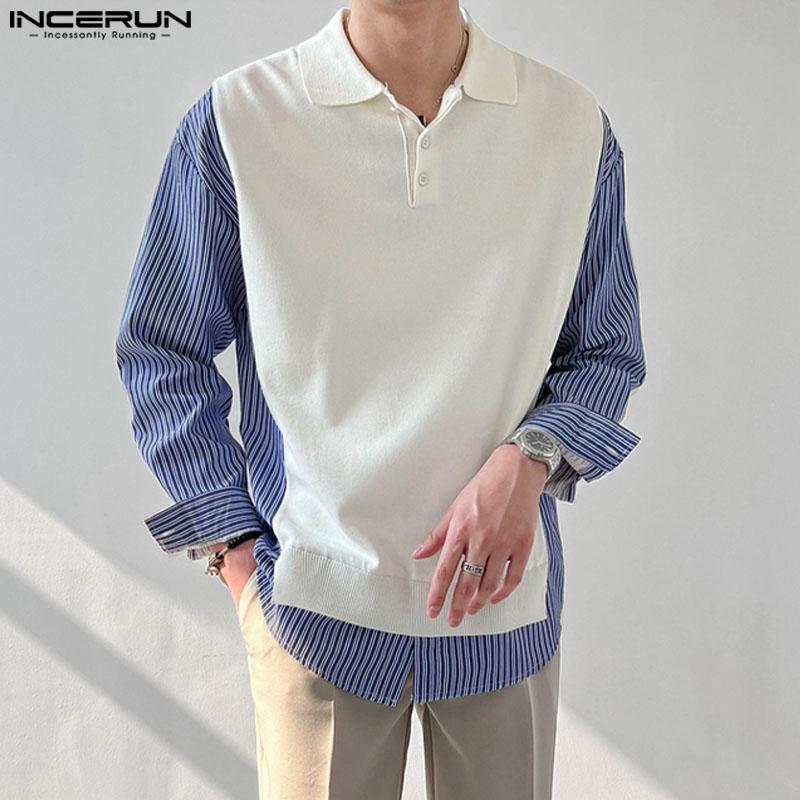 INCERUN Мужские рубашки с длинным рукавом в полоску в стиле пэчворк, повседневные топы