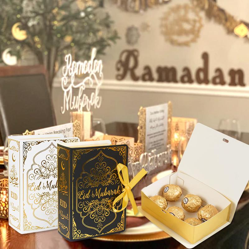 3/5/10 шт. Подарочные коробки Ид Мубарак в форме книги, коробка для шоколадных конфет, сумка, исламский мусульманский фестиваль, сувениры для вечеринки 2024 года, украшение на Рамадан