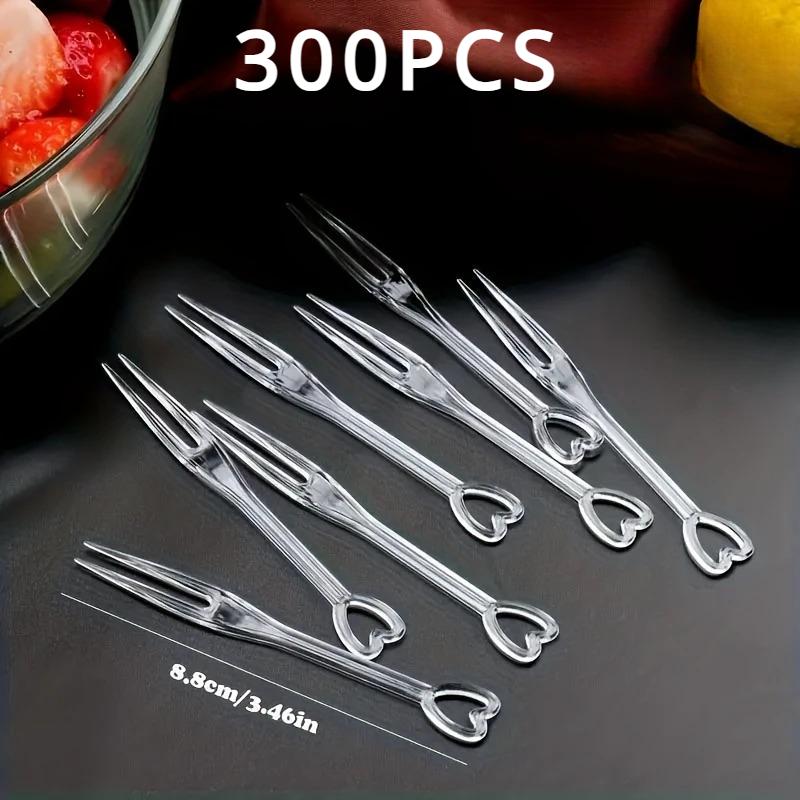 100/300 шт. элегантные одноразовые вилки в форме сердца для вечеринок, палочки для барбекю, набор шампуров, бытовая пластиковая вилка для еды, торта, фруктов