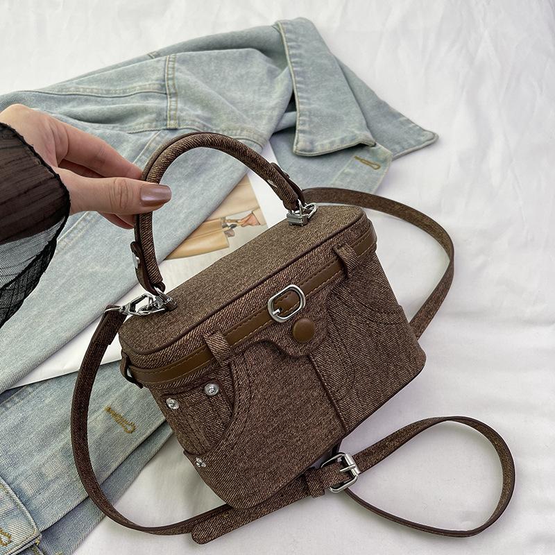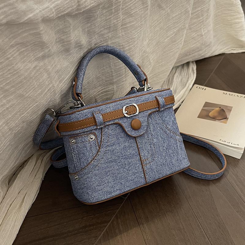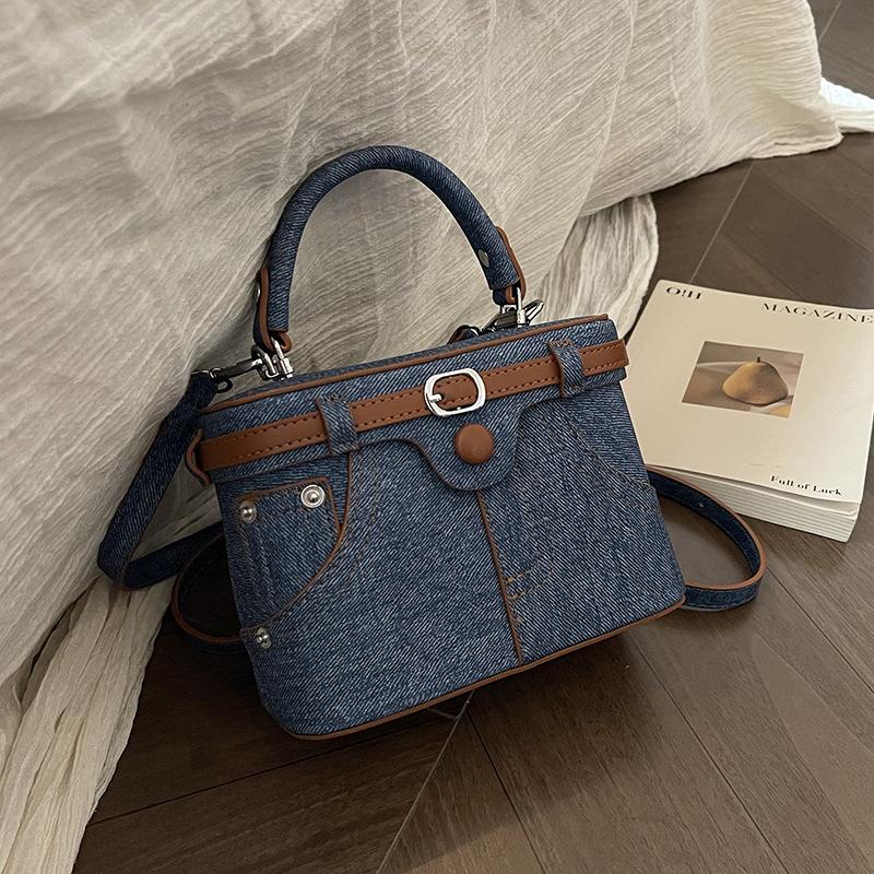 Ретро синие маленькие квадратные сумки для женщин, новые простые мини-сумки из искусственной кожи для поездок на работу, женская универсальная сумка через плечо с пряжкой