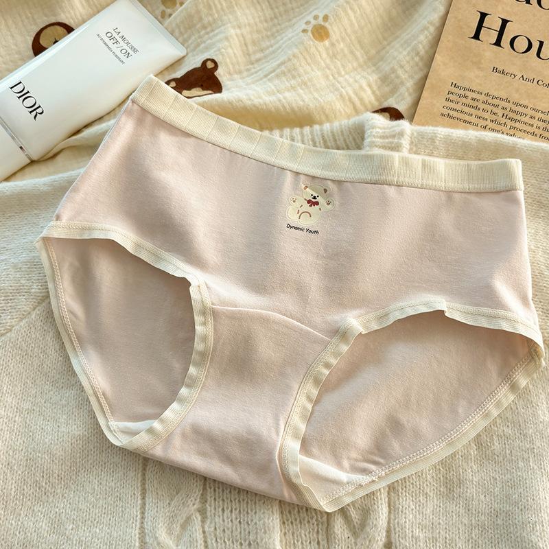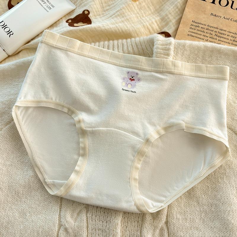 Осенне-зимнее милое женское белье с маленьким медвежонком, милое чистое хлопковое нижнее белье для девочек, средняя талия, женские трусики без следов