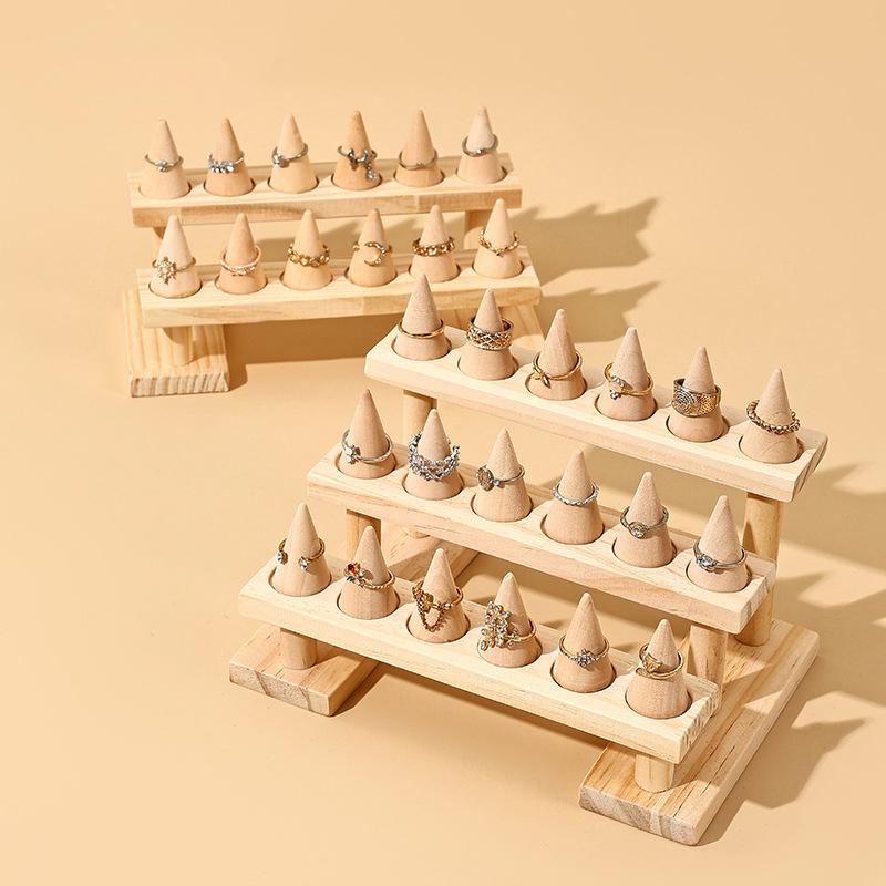 Деревянный конусный держатель для колец, подставка для ювелирных изделий, подставка для хранения колец, поднос для витрин, деревянная основа, декор магазина
