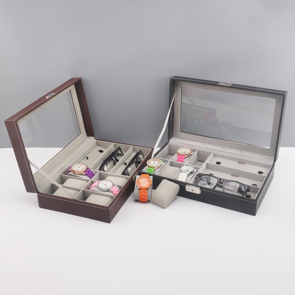 6+3 слота PU кожаный органайзер для часов солнцезащитных очков коробка дисплей держатель чехлы многофункциональное и эффективное хранение для мужчин и женщин — купить товар онлайн с бесплатной доставкой по всему миру!
