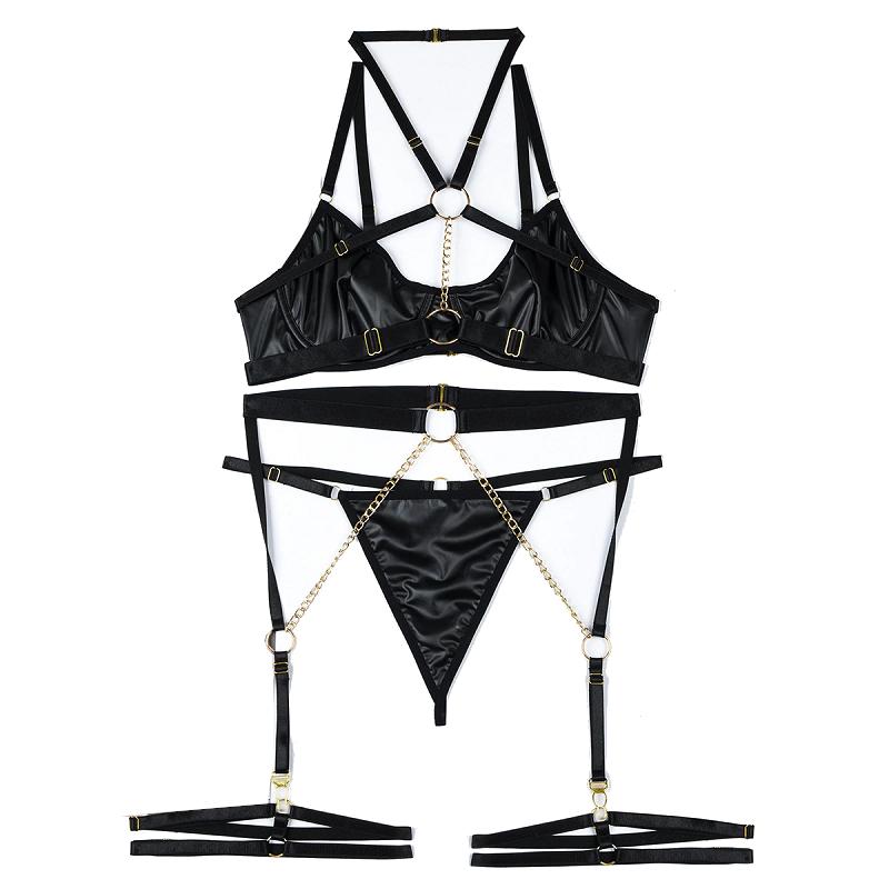 ПВХ Искусственный Латекс Бретельки Цепь Фетиш Нижнее Белье Женское Черное Синее Светло-Розовое Одежда