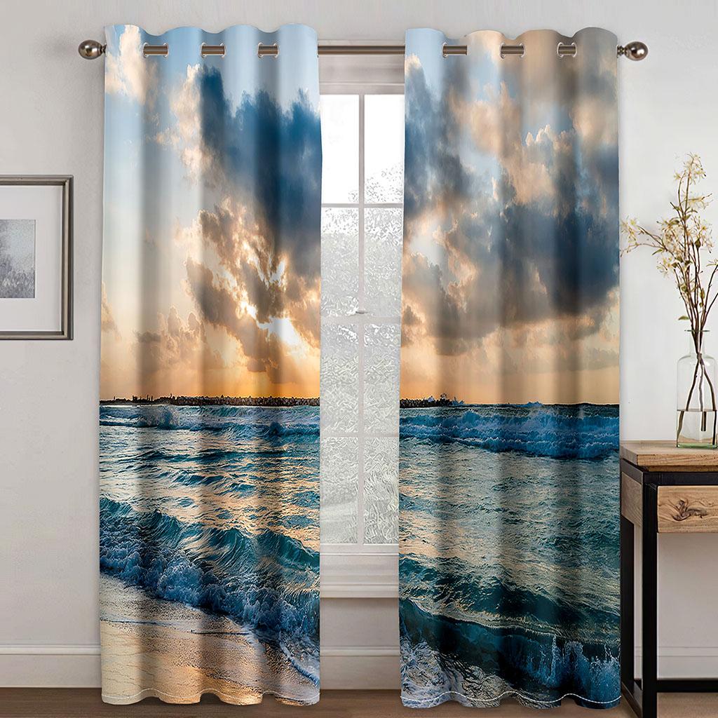 Закат на берегу моря, закат, пейзаж, солнцезащитные шторы, 3D-цифровая печать, полиэстеровые шторы, 2 панели, гостиная, спальня, декор, шторы