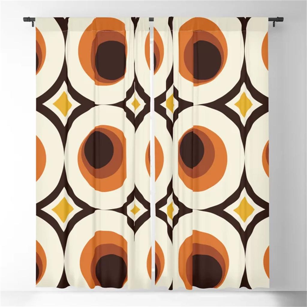 Оранжевые шторы Mid-Century Modern Circle Blackout Curtains 3D Print Window Warms для спальни, гостиной, декора, оконных украшений — купить товар онлайн с бесплатной доставкой по всему миру!