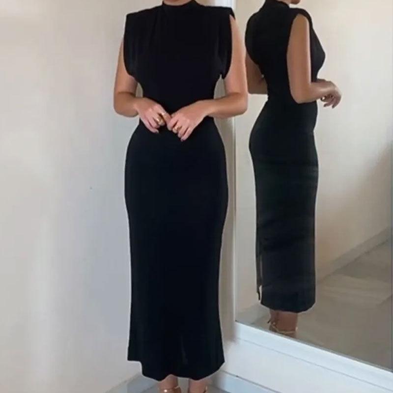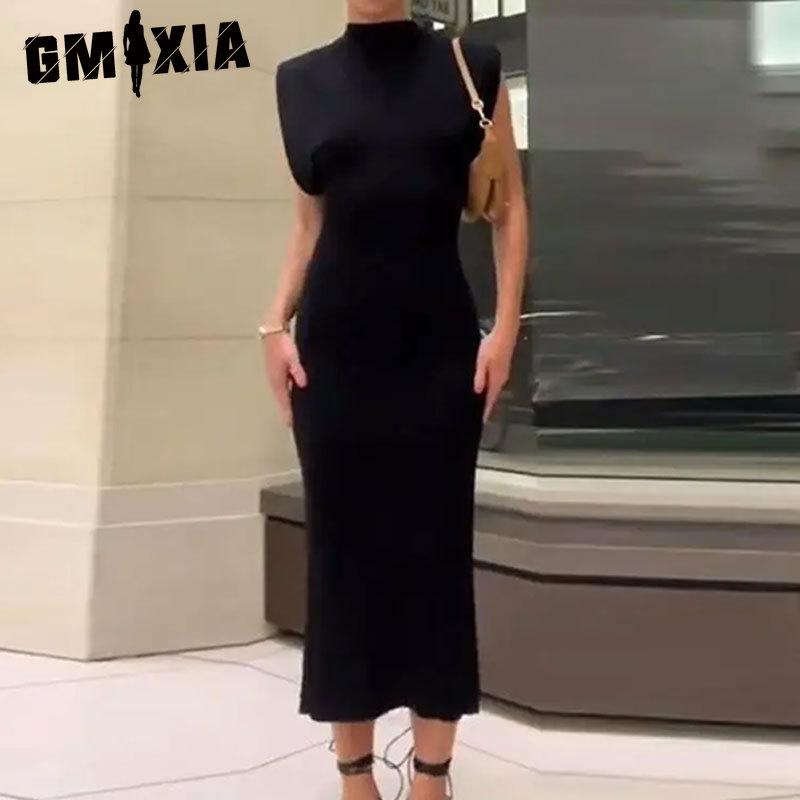 GMXIA Женская мода лето весна однотонный принт без рукавов с высоким воротом и высокой талией повседневные платья
