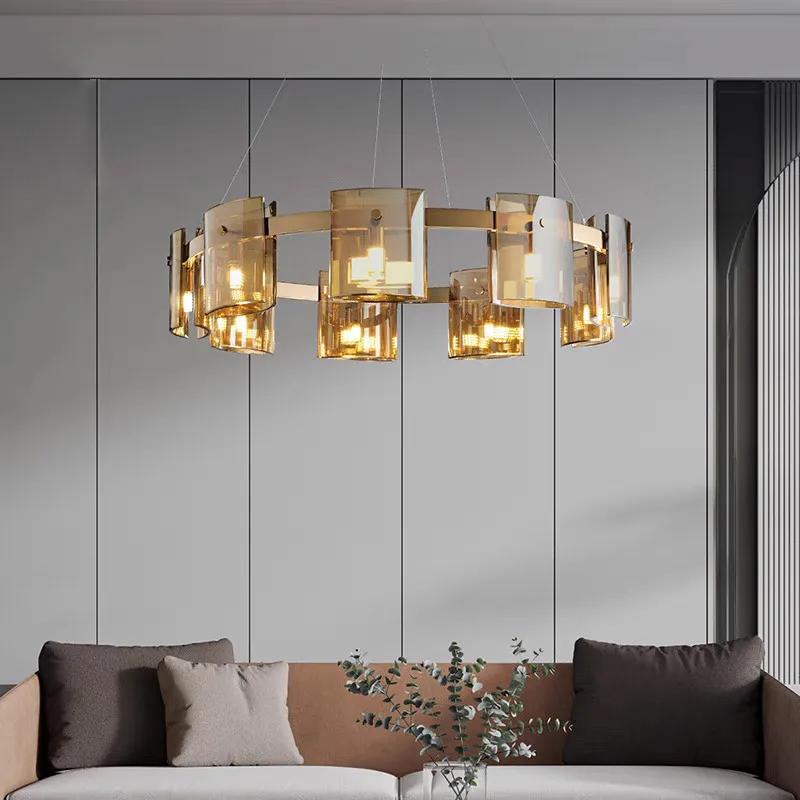 Современная роскошная гостиная светодиодный подвесной светильник дымчато-серый янтарный освещение спальни обеденный стол украшение дома стеклянный подвесной светильник