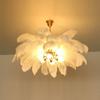 Lampu Gantung LED Bulu Burung Unta Alami Lampu Gantung Kamar Tidur Gantung Lampu Dekor Pencahayaan Restoran Lampu Gantung