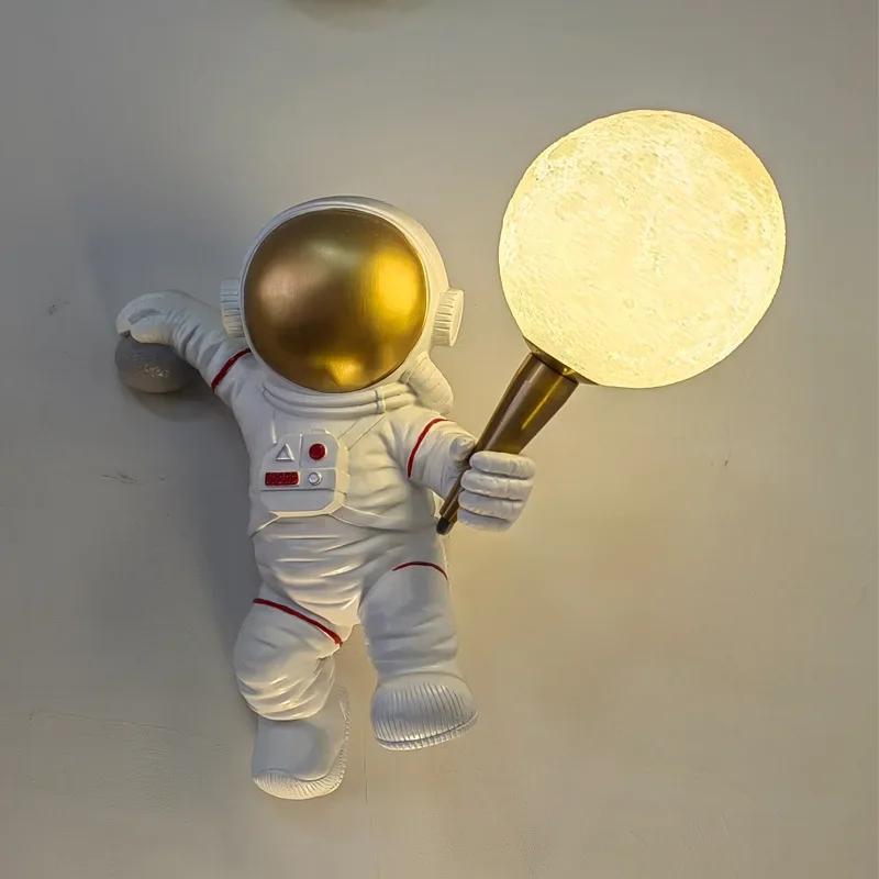 Скандинавский светодиодный индивидуальный астронавт Луна, детская комната, настенный светильник, кухня, столовая, спальня, кабинет, балкон, проход, лампа, украшение