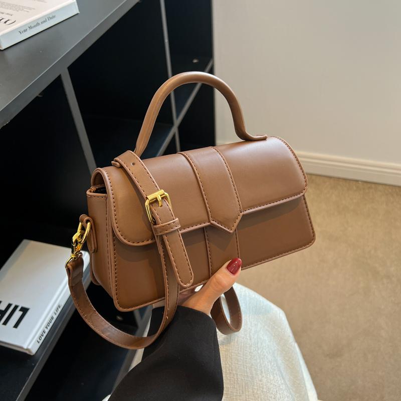 Осенние винтажные женские сумки с квадратной ручкой, сумка на одно плечо из текстурированной искусственной кожи, простая универсальная женская сумка-мессенджер