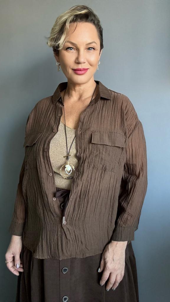 Рубашка из жатого жифона Размер и цвет единый. Мои параметры : 167, 98-85-100. По размеру отлично, длину рукавов хотелось бы длиннее ✔️Фасон: Классическая рубашка с пуговицами Плечи спущенные На груди накладные карманы На манжетах пуговицы ✔️Ткань: Полиэстер, также называемая китайским шифоном Не тянется, просвечивает, немного электризуется ✔️Пошив фабричный, внутренние швы обработаны бейкой 📐Замеры: Плечи 50 Длина рукава от горловины 65 Длина рукава 44 Ширина рукава в предплечье 18 ОГ подмышками 116 ОТ 114 ОБ 114 Длина 67