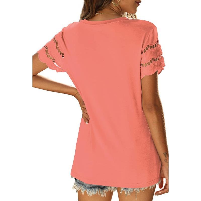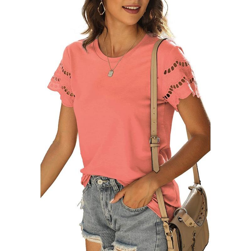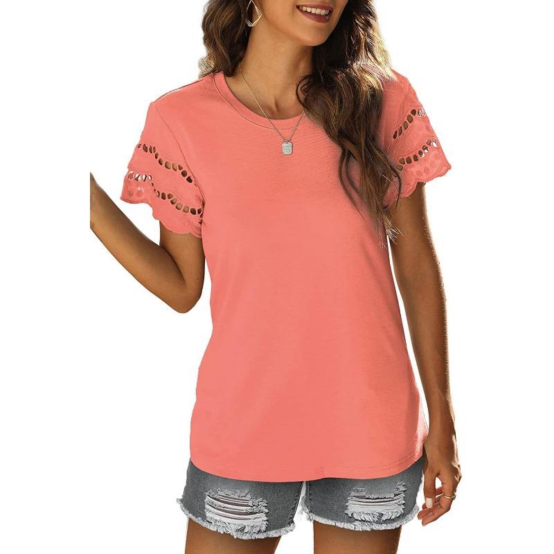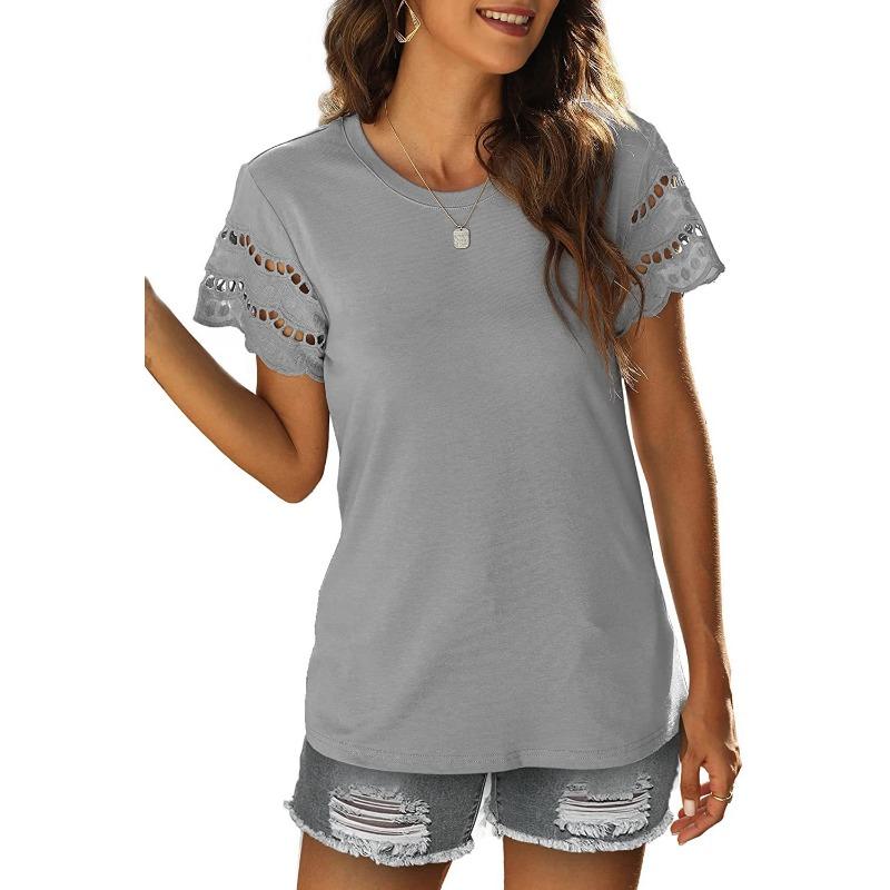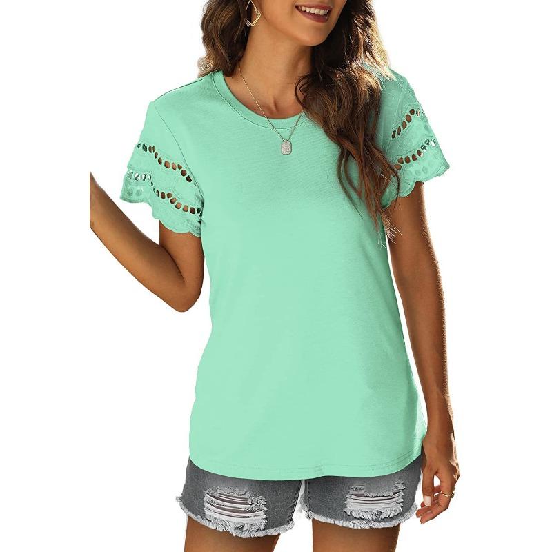 YYFS Женские модные повседневные летние весенние однотонные блузки и рубашки с короткими рукавами и круглым вырезом с принтом