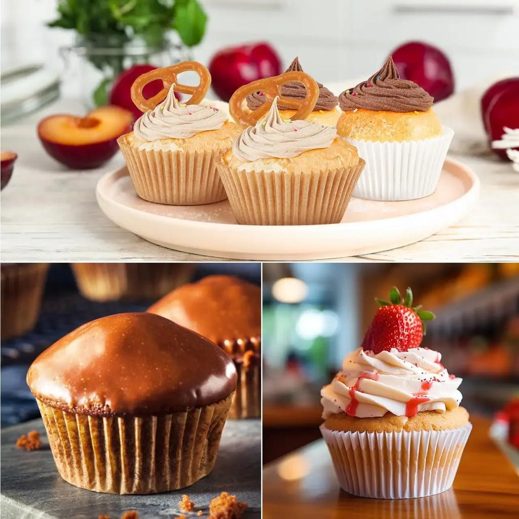 Формочки для выпечки 100 шт. бумажные формочки с антипригарным покрытием для кексов, маффинов, кексов, идеально подходят для свадеб, дней рождения, детских праздников или праздничных вечеринок