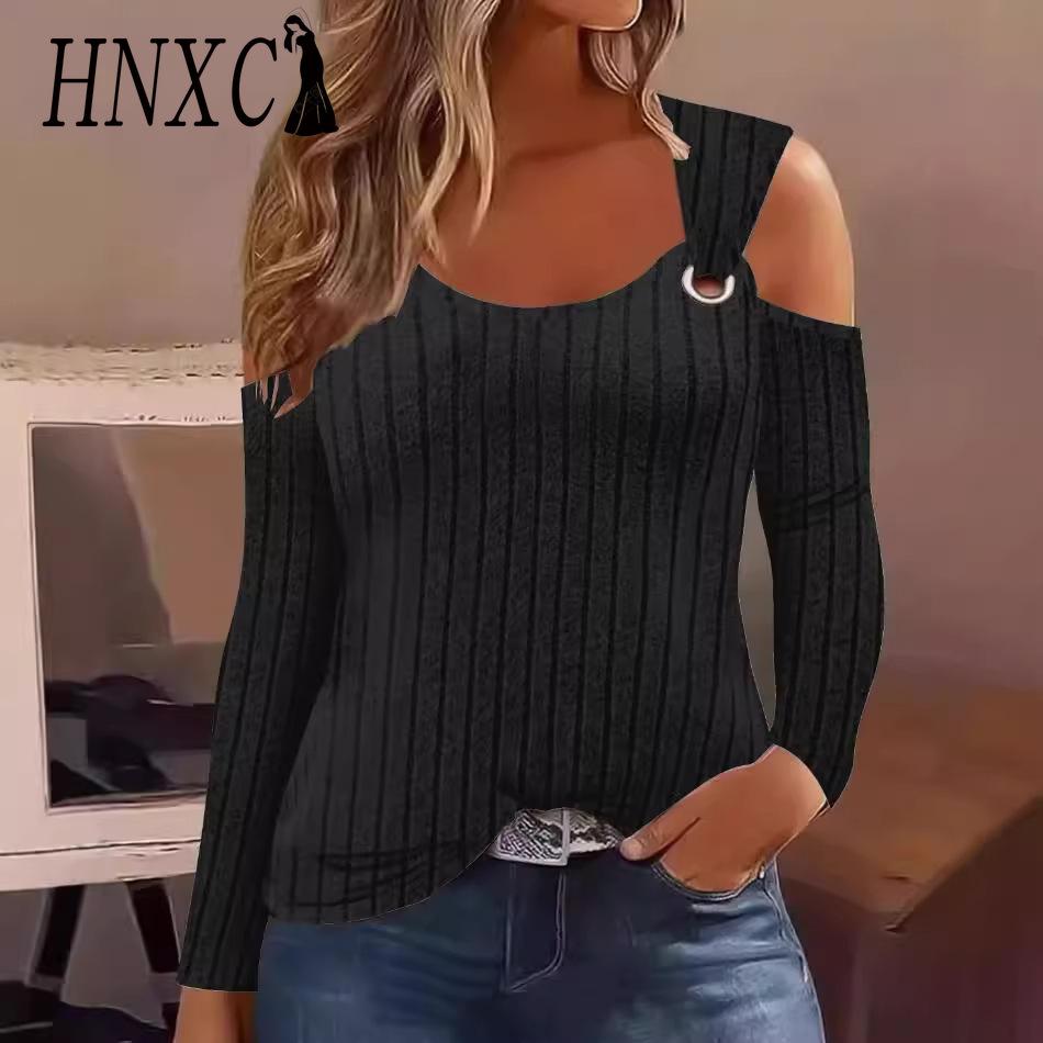 HNXC Женские модные повседневные осенне-зимние однотонные блузки и рубашки с круглым вырезом и длинными рукавами с принтом