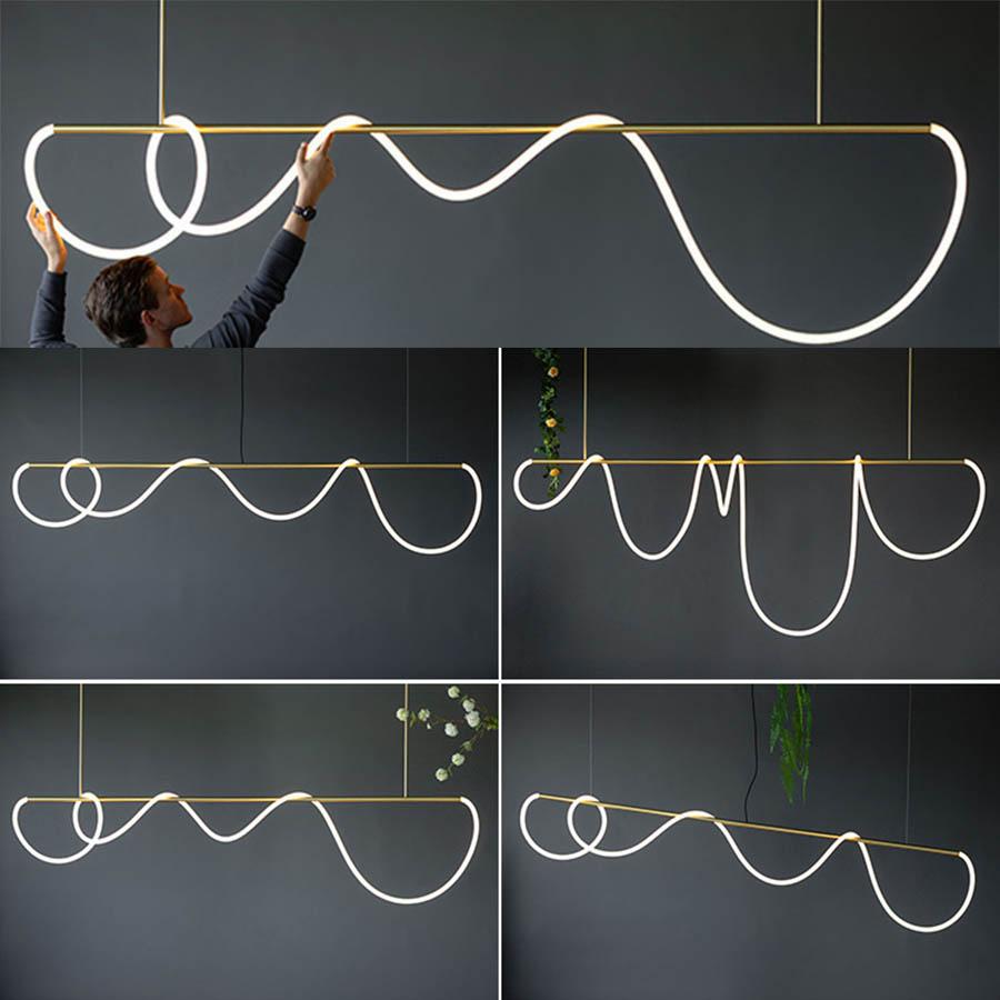 Современная роскошная светодиодная люстра с длинной трубкой своими руками, гибкая длинная линия, подвесной светильник для кухонного острова, ресторана, бара, подвесные светильники
