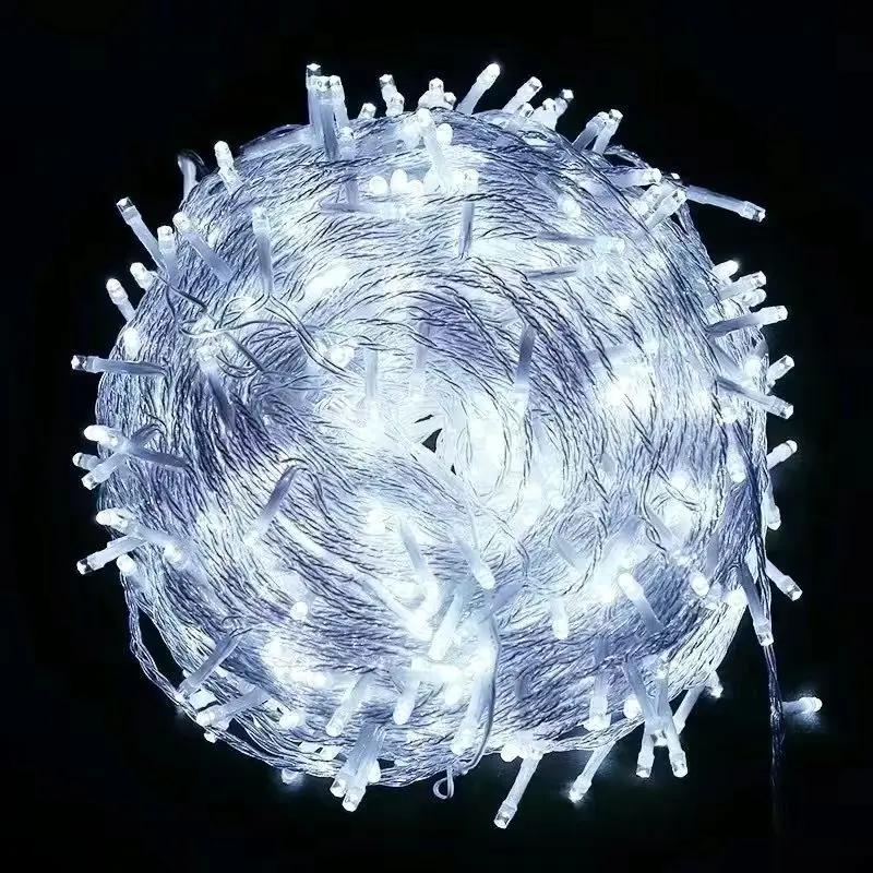 Светодиодная гирлянда, гирлянды 10 м, 30 м, 50 м, 100 м, новогодняя елка, свадебное украшение, водонепроницаемая гирлянда для помещений и улицы, 220 В, ЕС, лампа