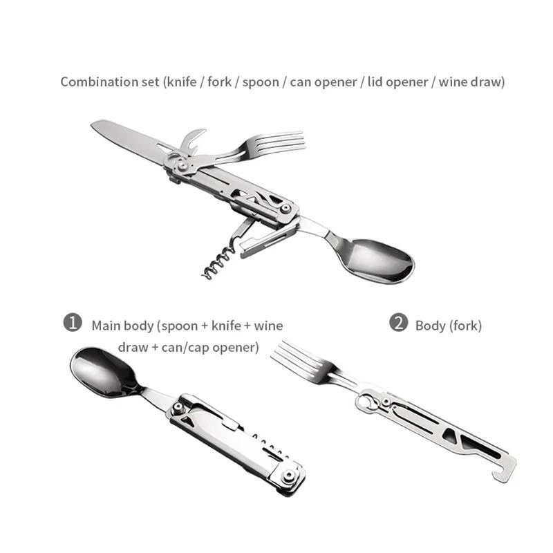 Складной нож из нержавеющей стали 420, многофункциональный портативный нож-вилка-ложка для выживания на открытом воздухе, карманный нож для кемпинга, съемный ручной инструмент