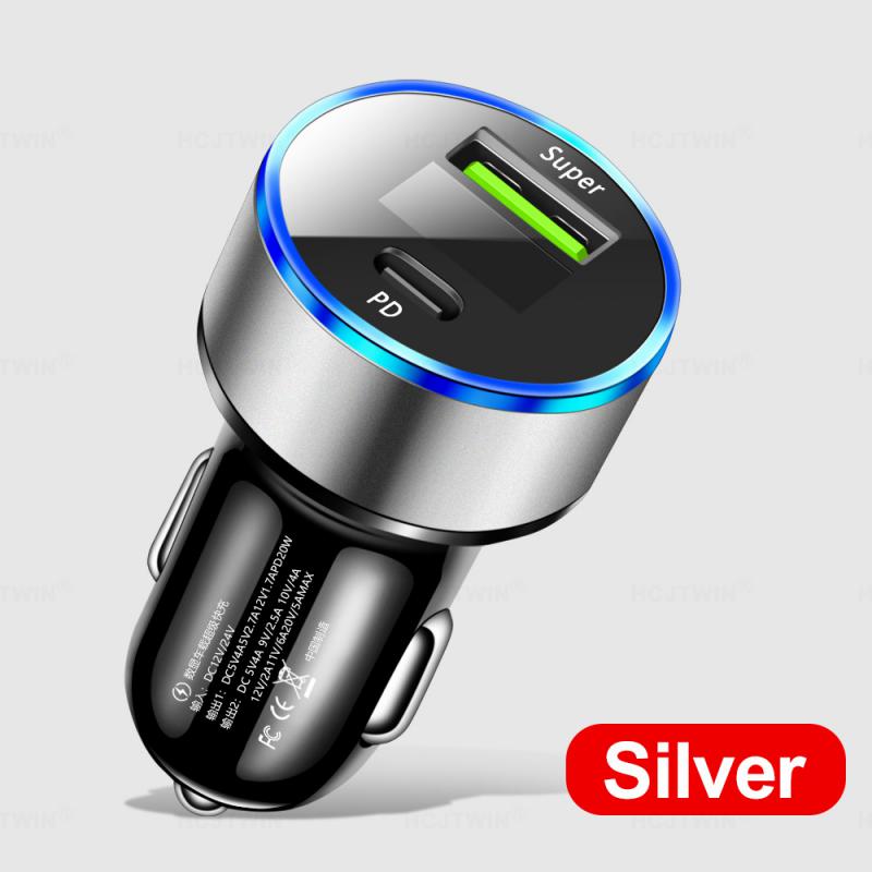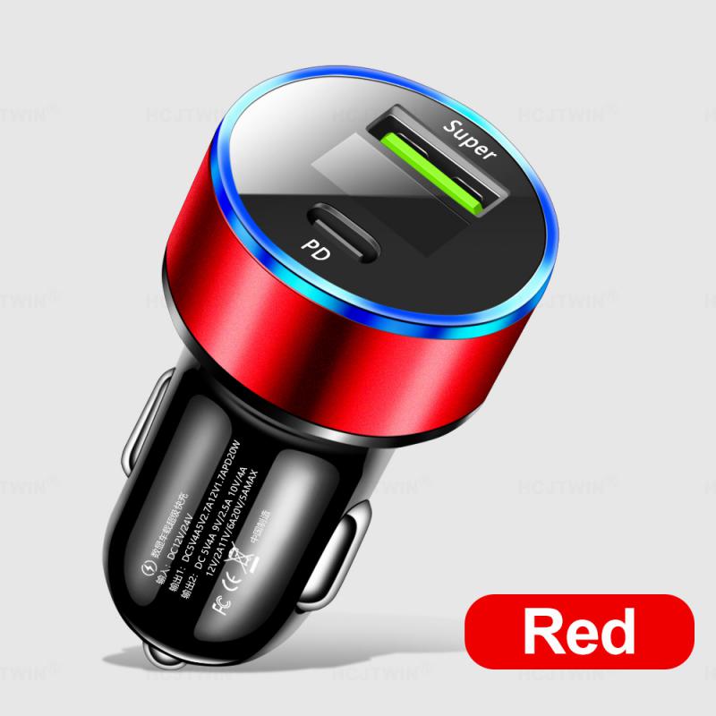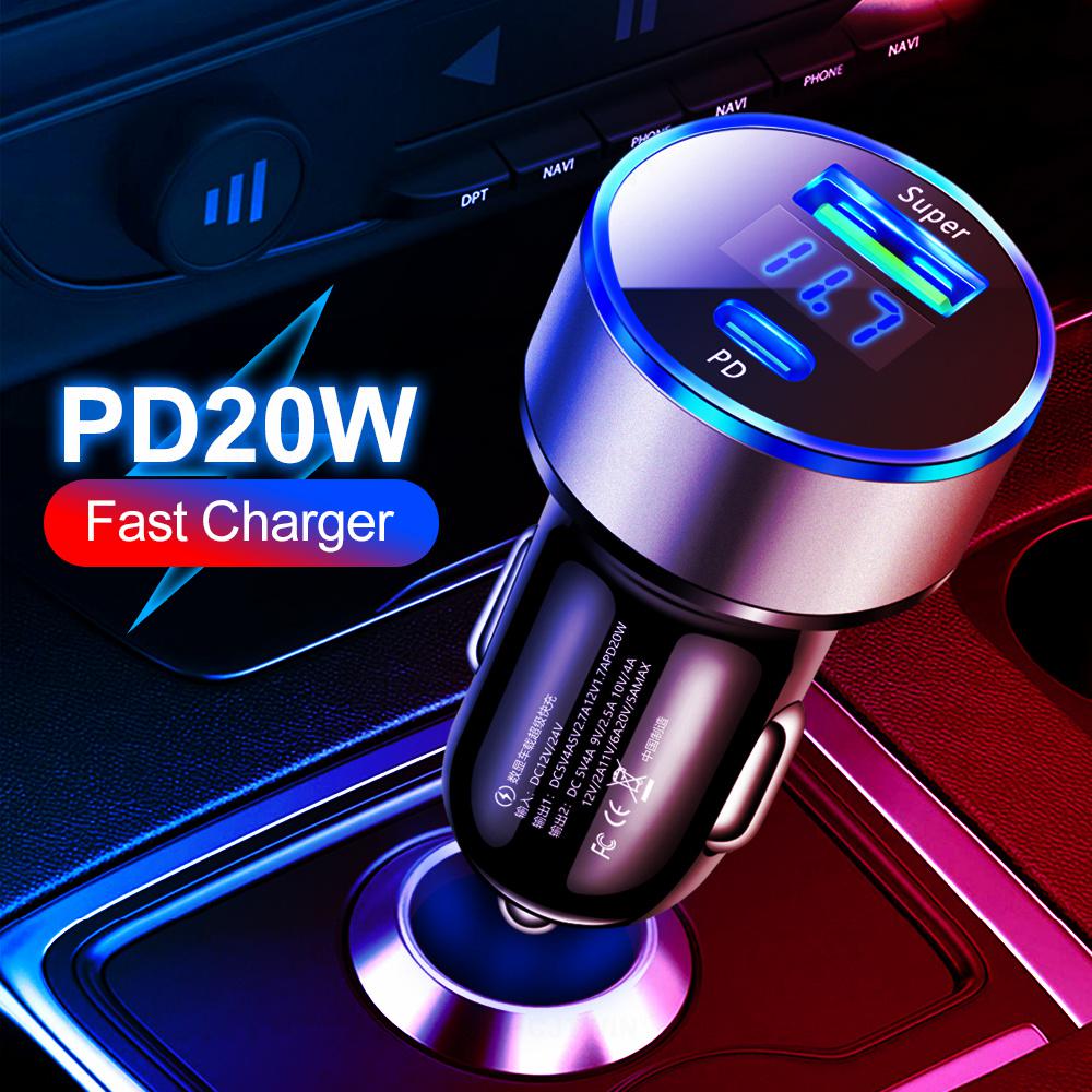 Цифровой дисплей Зарядное устройство для телефона 20 Вт Адаптер для автомобильной зарядки Автомобильное зарядное устройство Автомобильные принадлежности Type-c Прикуриватель Автомобильные аксессуары