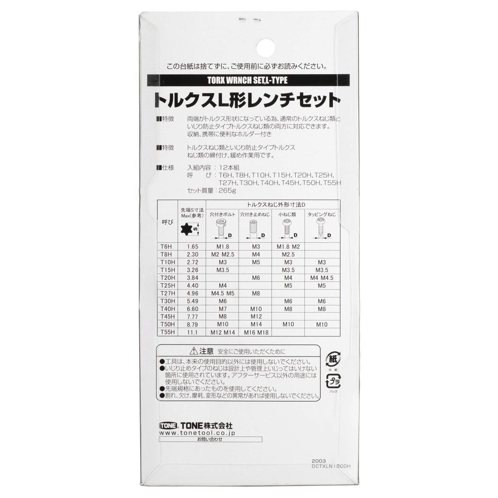 TONE Набор торцевых ключей TXLN1200H 12 предметов L-образные Содержание