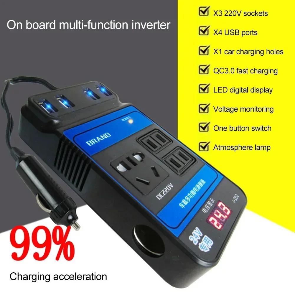 Автомобильный инвертор постоянного тока 12 В 24 В в постоянный ток 110 В/220 В, преобразователь, отключение 4-USB, автоматический светодиодный дисплей, инвертор, множественная защита