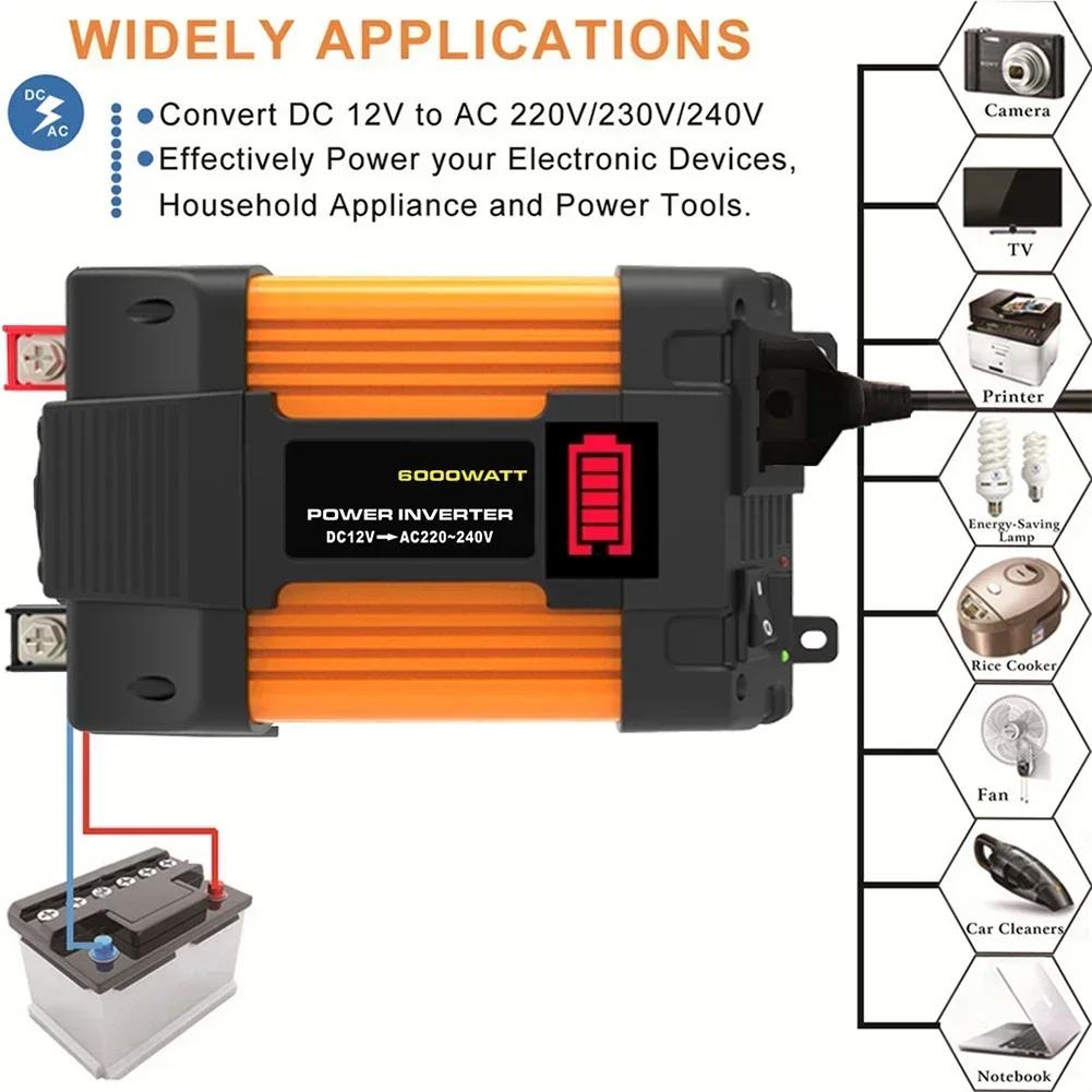 6000 Вт автомобильный инвертор 12 В в переменный ток 220 В переменного тока синусоидальный преобразователь трансформатор автоматический двойной USB порт инвертор чейнджер