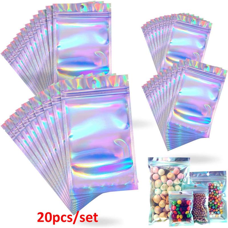 50 шт. многоразовые герметичные пакеты с защитой от запаха, голографические фольгированные пакеты, плоские пакеты с застежкой-молнией для еды, конфет, ювелирных изделий, винтов ADM