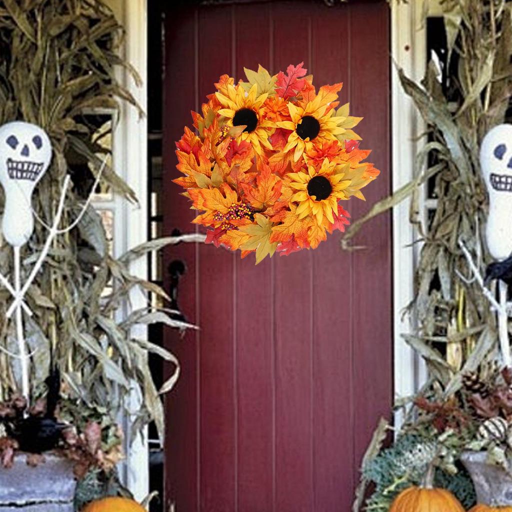 Осенний венок Венок из искусственных цветов Кленовый лист Урожай Осенняя гирлянда для помещения и улицы Хэллоуин Окно Фестиваль Крыльцо