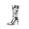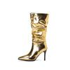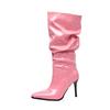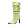 Женские сапоги на высоком каблуке, осень и зима, новые, карамельного цвета, остроносые, на шпильке, большие, средние сапоги