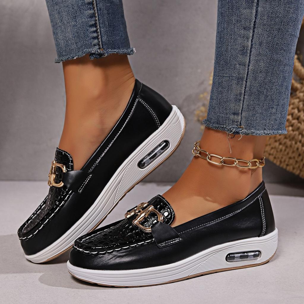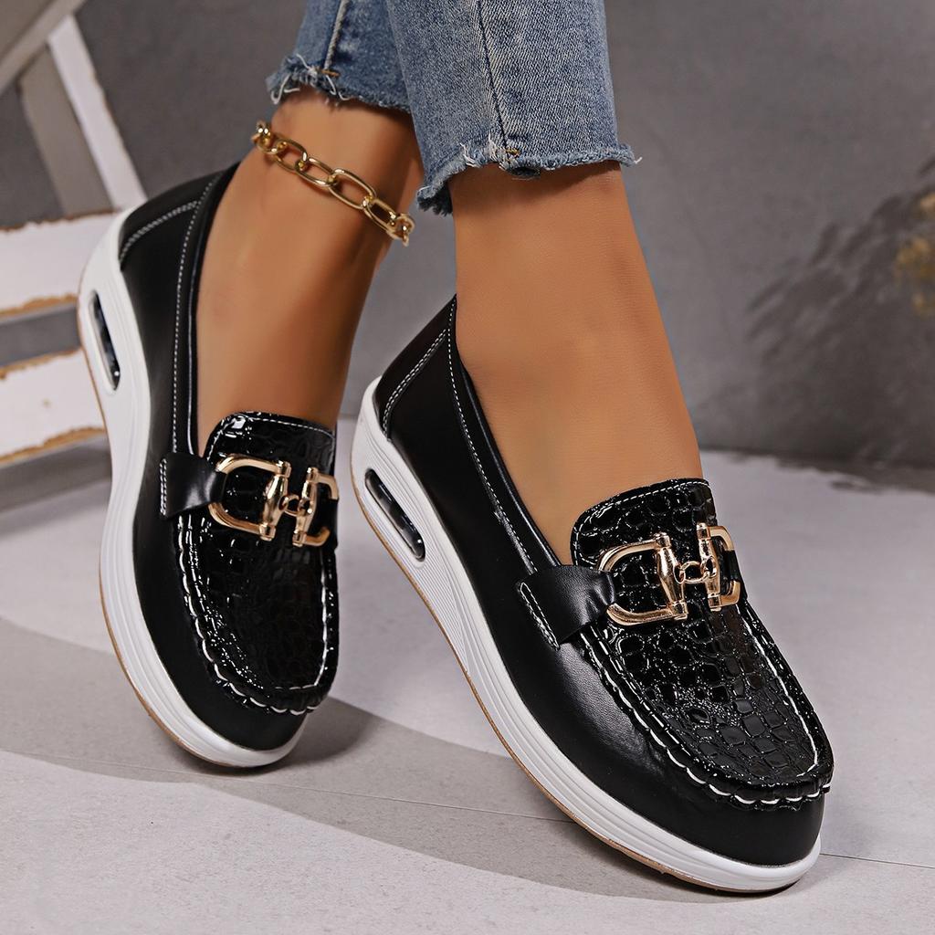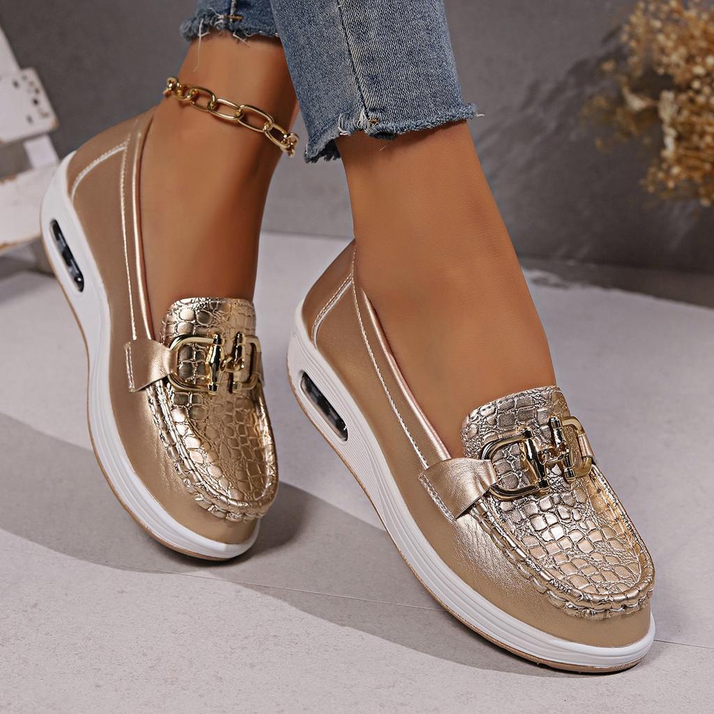 Золотые кроссовки на танкетке с платформой из вулканизированной стали для женщин. Тренды. Удобные лоферы с металлической пряжкой. Модная повседневная обувь на воздушной подушке.