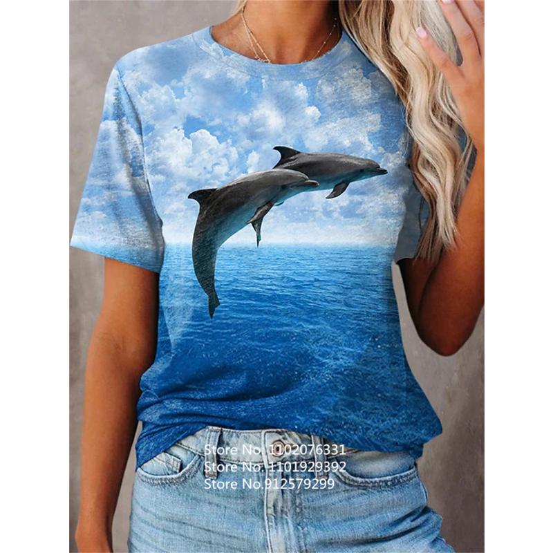 2022 Женская футболка с дельфином 3d для девочек, топы с коротким рукавом, корейская мода, женские футболки с белкой, женская одежда