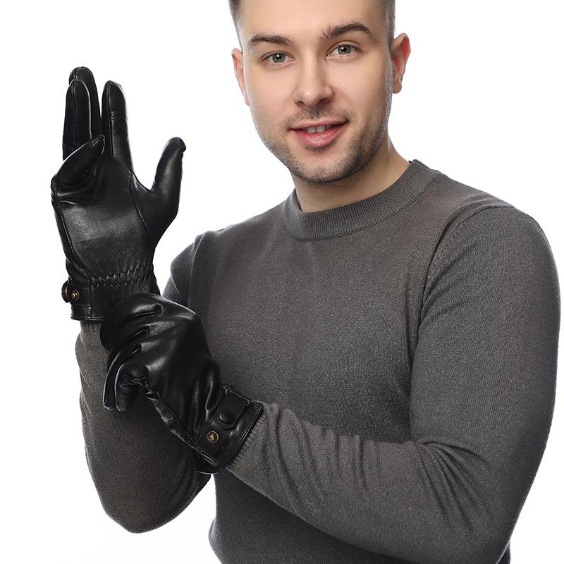 Перчатки из натуральной кожи для мужчин, сенсорный экран, зимние теплые варежки из натуральной овчины, ветрозащитные, водонепроницаемые, для вождения, езды на мотоцикле