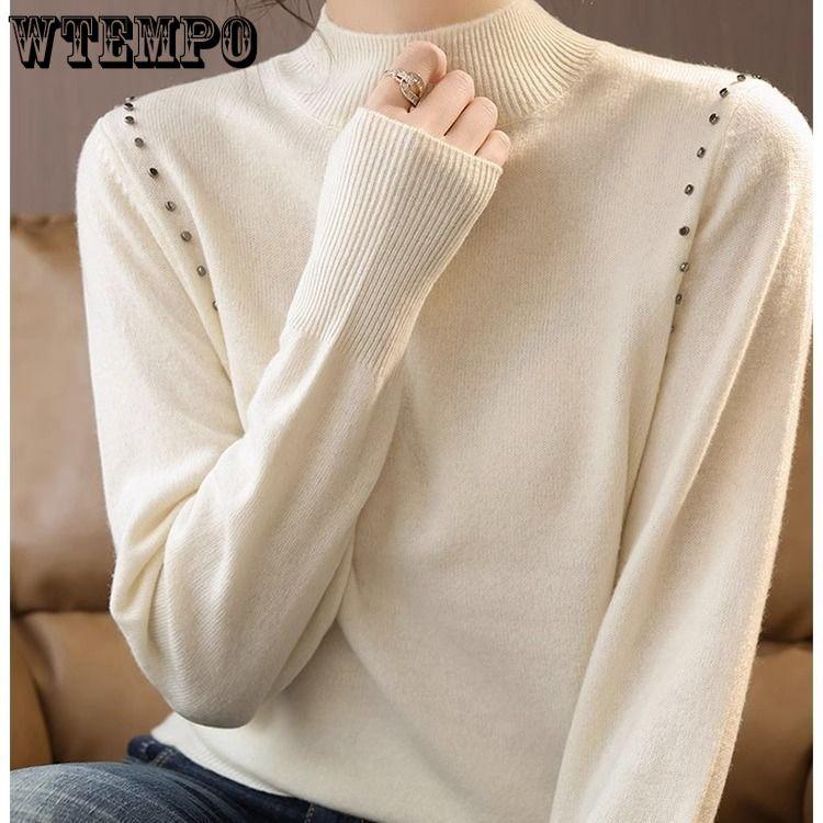 Осенне-зимний женский свитер с высоким воротником и длинными рукавами, трикотажная рубашка, свободная одинарная одежда, нижняя часть рубашки, верхняя часть — купить товар онлайн с бесплатной доставкой по всему миру!