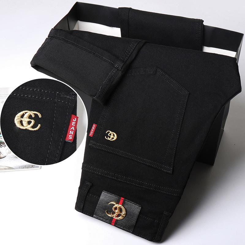 Весенние и осенние черные эластичные джинсы мужские облегающие маленькие прямые брюки качественные большие повседневные мужские брюки