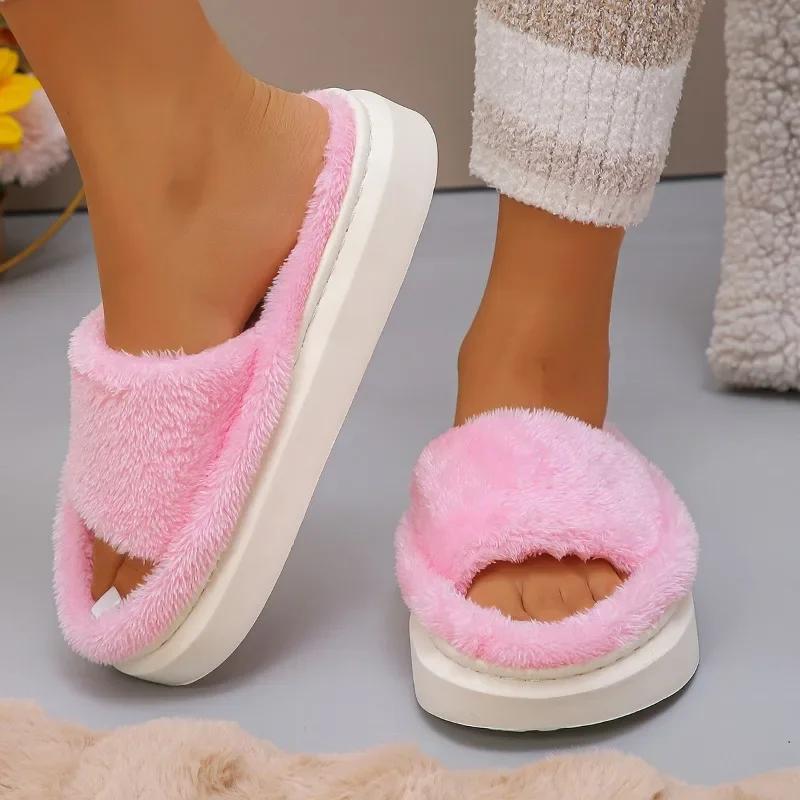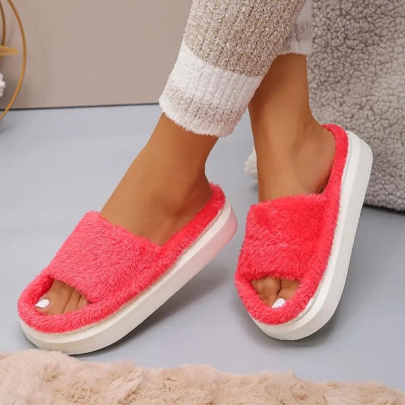 Женские тапочки из утолщенного пуха, домашние тапочки на плоской подошве, удобные теплые пушистые туфли для женщин, модные шлепанцы для женщин, Zapatos De Mujer