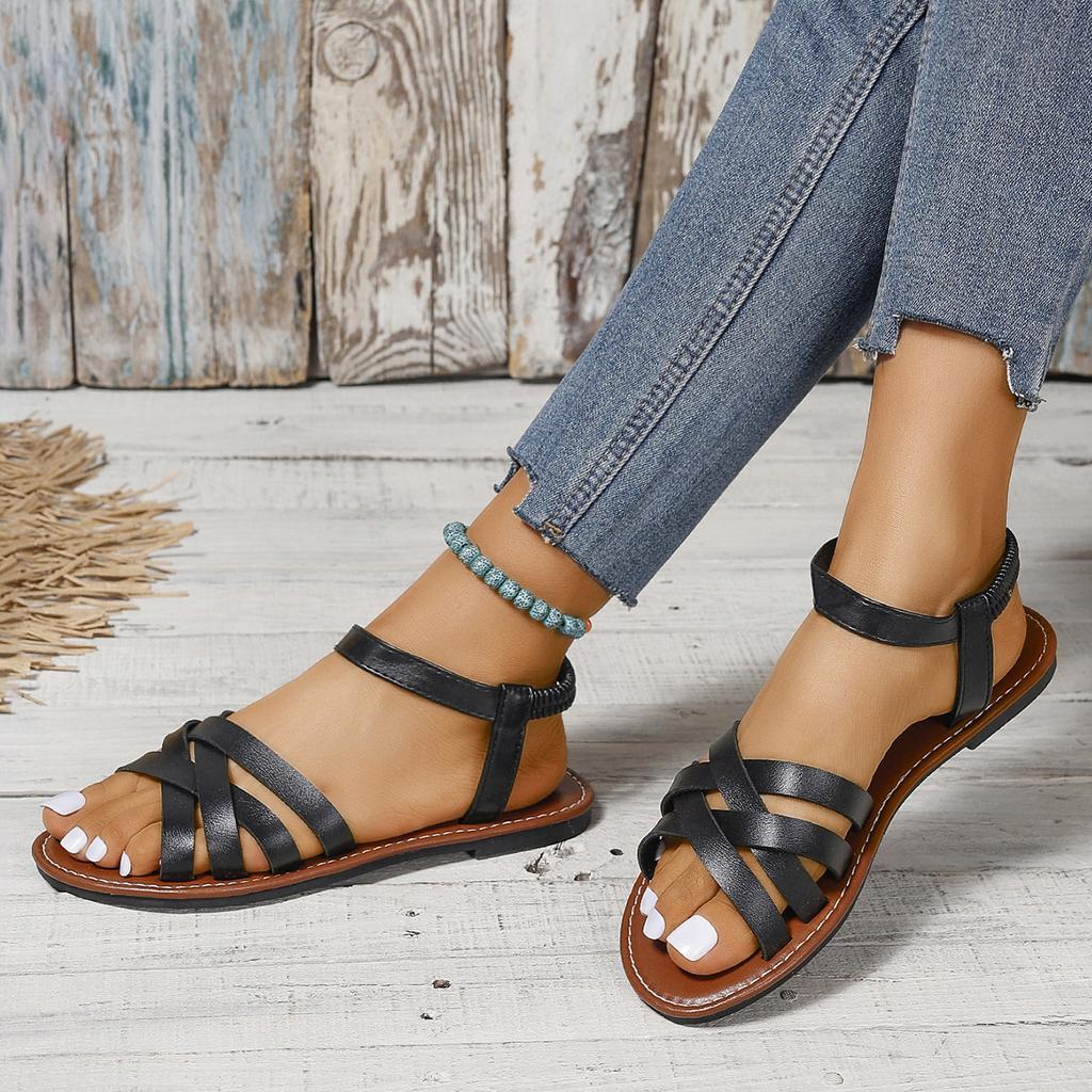Женские сандалии 2024 года, новые летние женские туфли на плоской подошве с римским ремешком, роскошные сандалии, дизайнерская обувь, женские пляжные сандалии для отдыха на открытом воздухе
