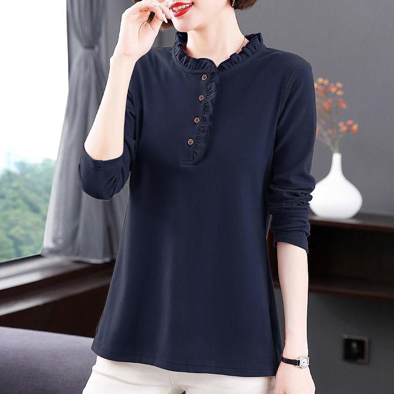 Хлопковая рубашка больших размеров для женщин, весна-лето и осень, футболка с длинными рукавами для мам среднего возраста, универсальный женский топ — купить товар онлайн с бесплатной доставкой по всему миру!