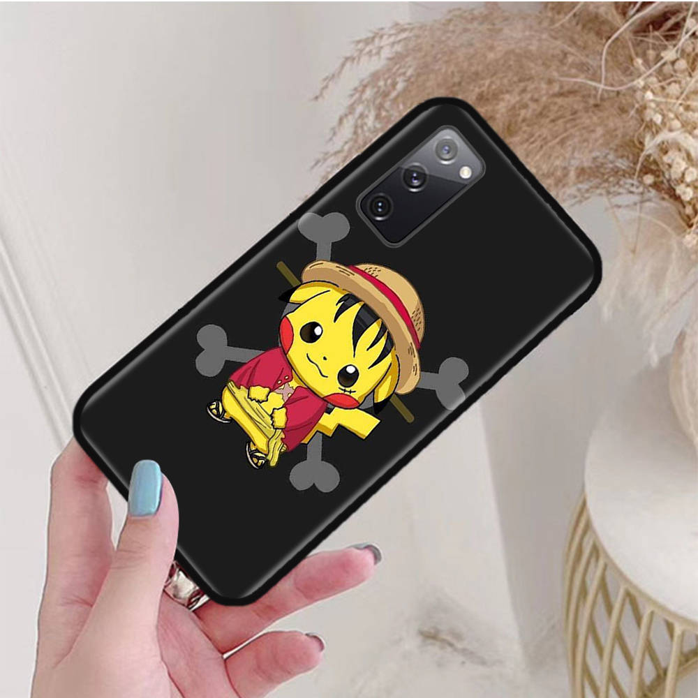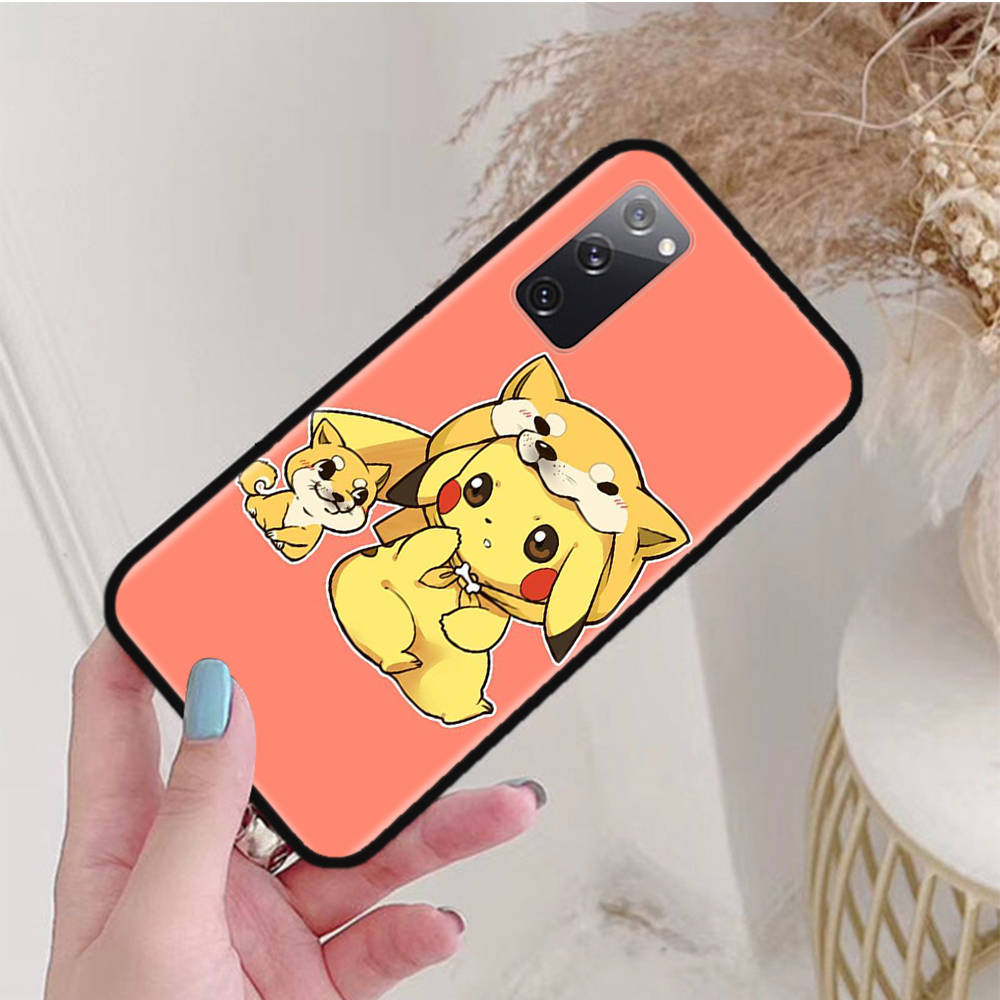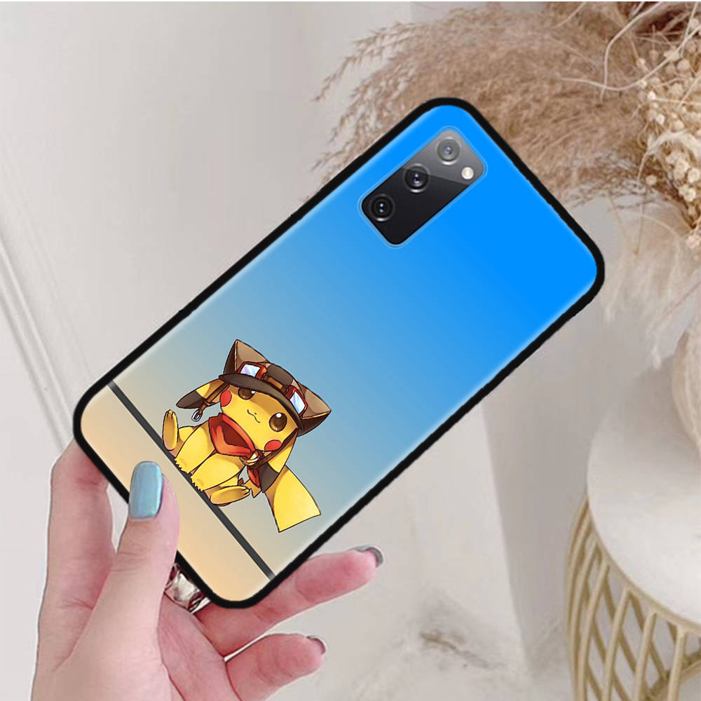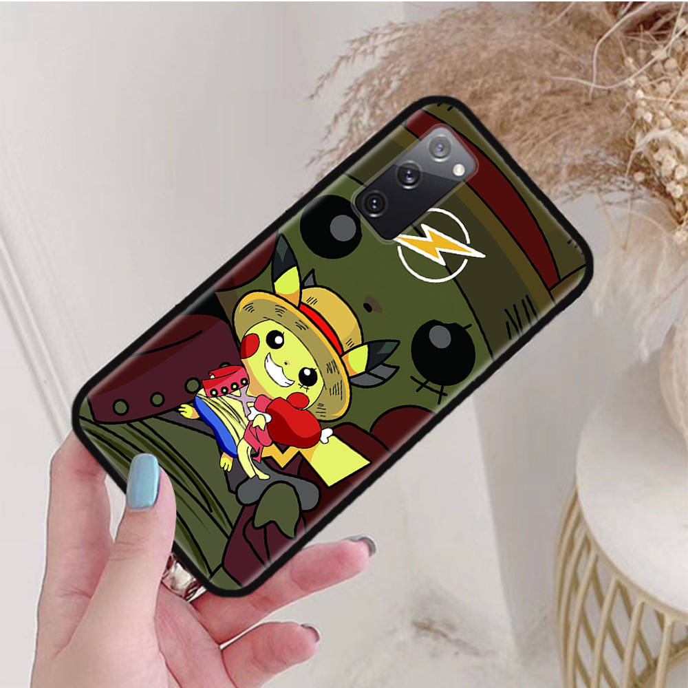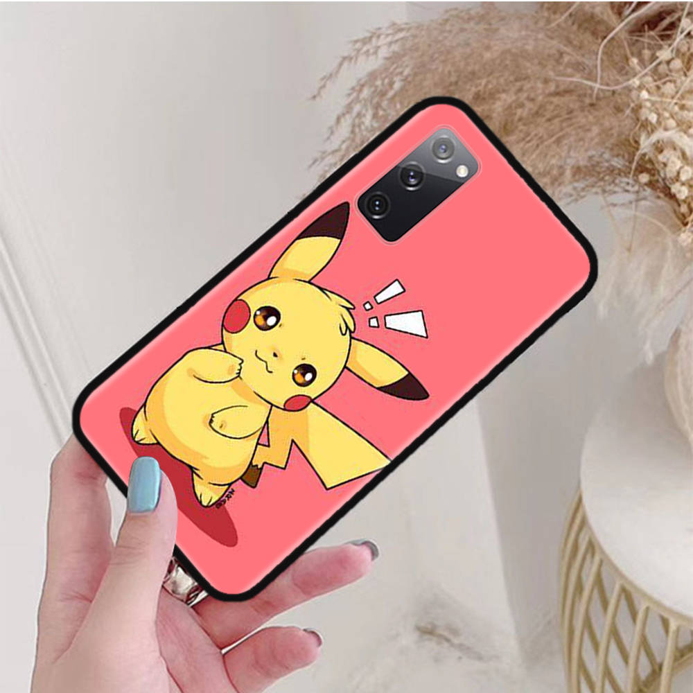 Черный чехол для Samsung Note 20 Lite S24 Ultra S23 A03 A05 A06 A11 A71 A15 A16 A13 A24 A25 A33 A52 A53 A50 M55 M35 Plus P-33 Pokemons Pikachu