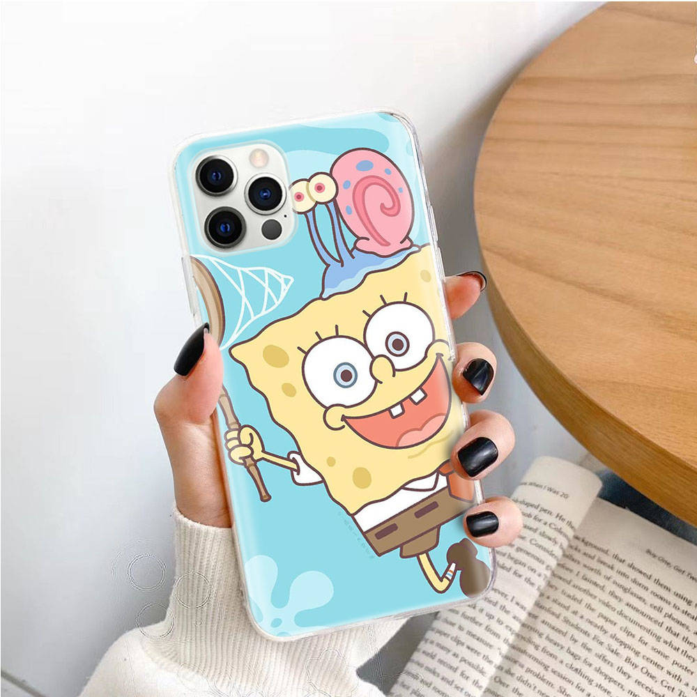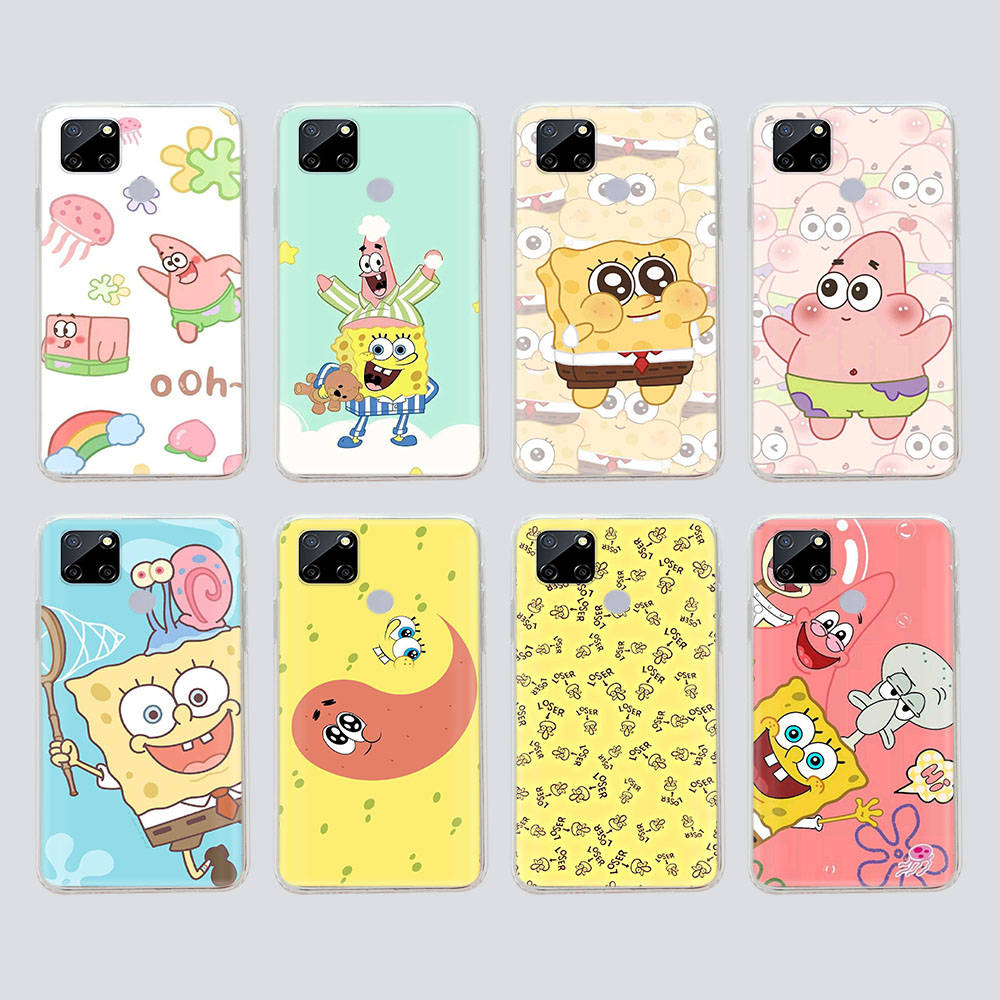 Прозрачный чехол для Samsung A04 A14 A23 M33 M53 Realme 10 9 C35 C55 VIVO X80 Infinix Hot 30 Note 11 Tecno Spark 8P Pro S-40 Spongebob